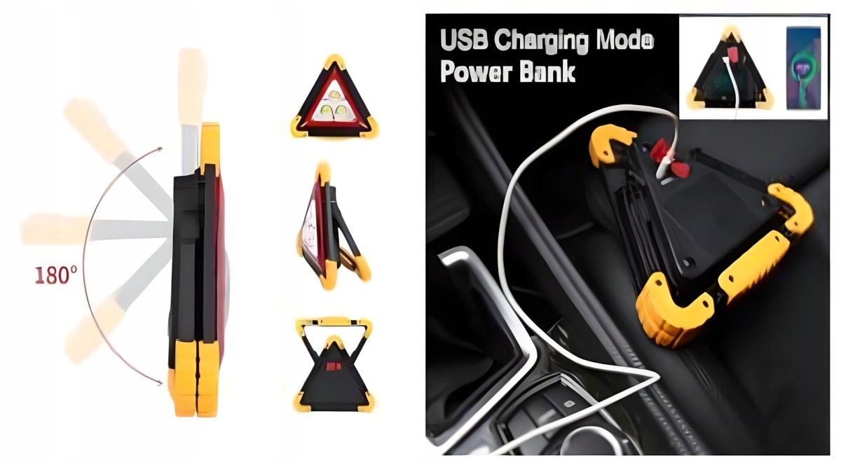 Світлодіодне попереджувальне трикутник, ліхтарик, батарея, акумулятори, робоче світло