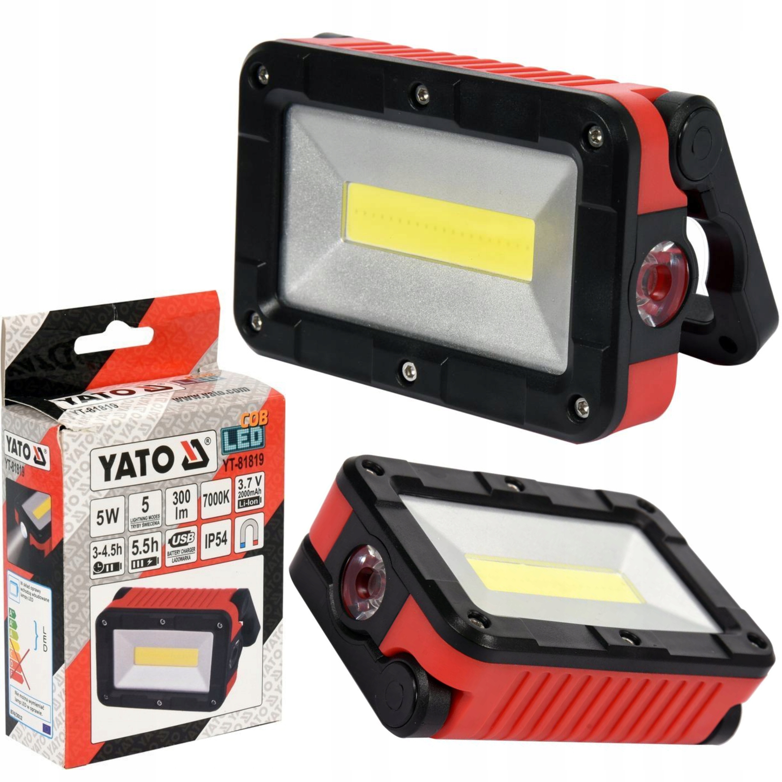 Світло, Завантажене та портативна фара для освітлення робочого місця в майстерні або на будівельному майданчику. Висока потужність забезпечить легкий потік 300lm, а місткий акумулятор дозволяє працювати до 5,5 годин . Додатковою перевагою є водостійкість (IP54) та стільки, скільки 4 режими освітлення.