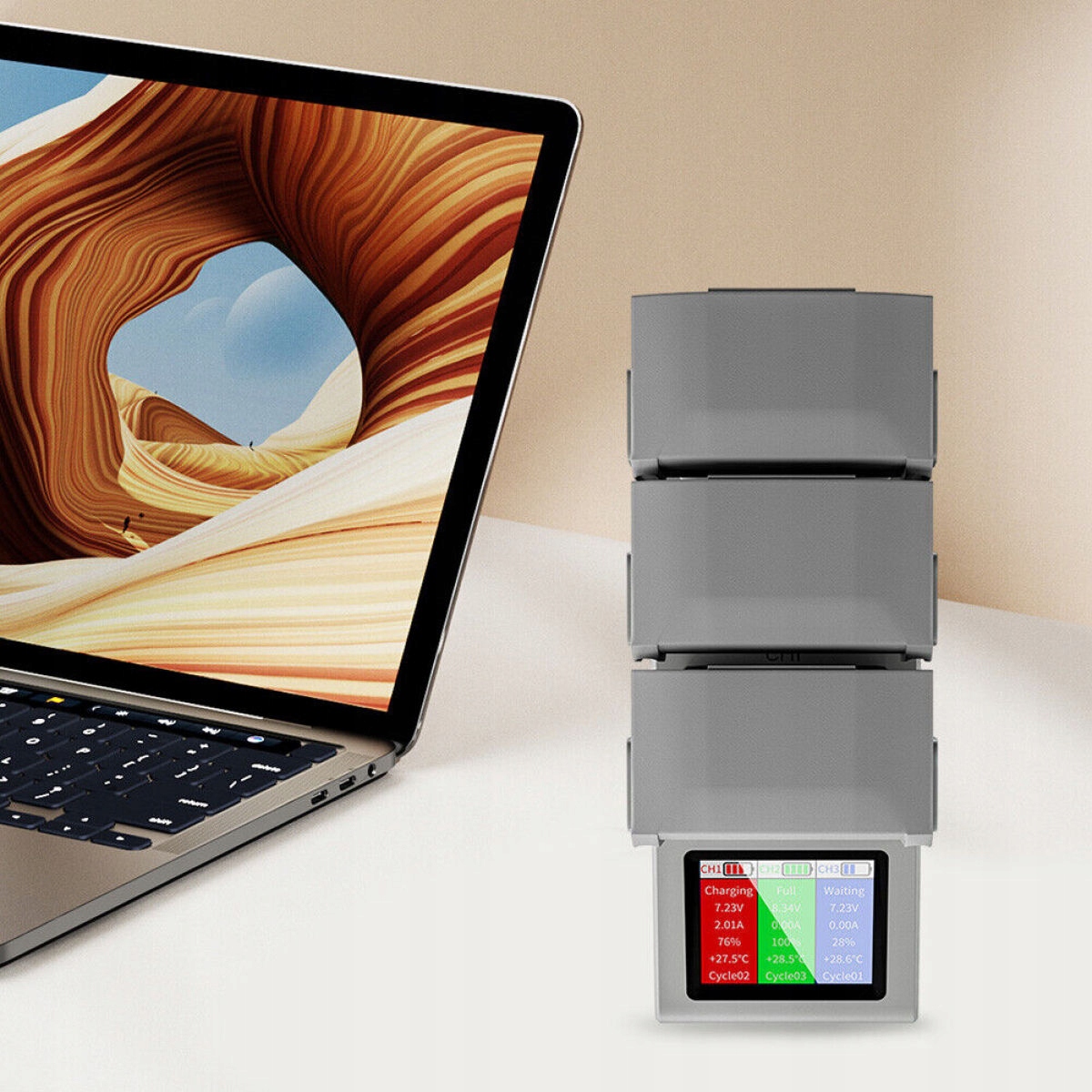 зарядний пристрій заряджає акумулятор DJI Mini 3 Pro від високого до низького рівня, залежно від рівня заряду акумулятора. Близько 135 хвилин на три акумулятори 2453 мАг (близько 45 хвилин для кожного акумулятора) і близько 195 хвилин на три акумулятори 3850 мАг (близько 65 хвилин для кожного акумулятора). Вдосконалений Mini 4 Pro акумулятор забезпечує стабільну енергію. Багато сили на більш високих висотах і веселіше від польоту.