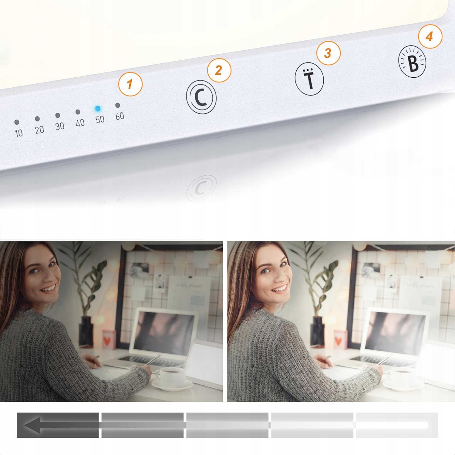 🌞-🌞-Wits за допомогою сенсорних кнопок, 5 рівнів яскравості, 3 кольорової температури (3000 К, 4700 К, 6500 К) та здатність встановлювати таймер від 10 до 60 хвилин.
