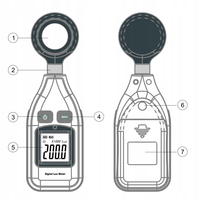 - Діапазон вимірювань: 1-200 000 люкс / 1-18500 Fc,