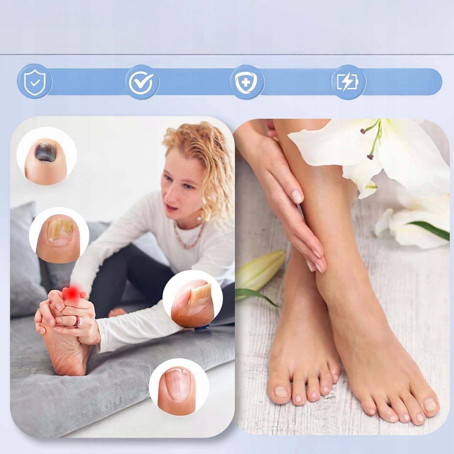 Посилите боротьбу з мікозом за допомогою 2 потужних інфрачервоних лазерів (910 нм) і 4 синіх світлодіодів (470 нм). Поєднання цих технологій забезпечує точне освітлення кожного куточка нігтя, підвищуючи ефективність і прискорюючи відновлення. Ваш шанс позбутися від мікозу незрівнянно вище! ✅