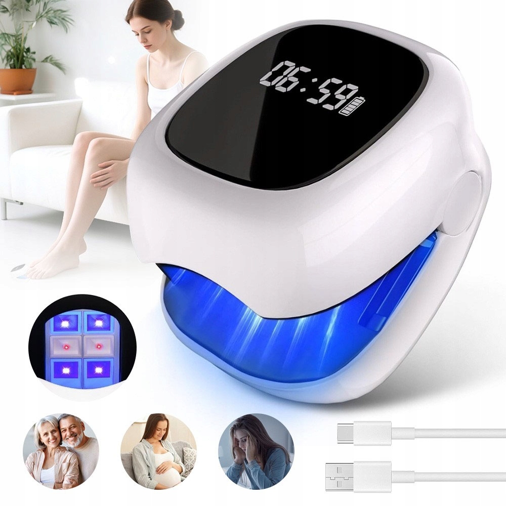 ⭐СВІТОЛОДНА ЛАМПА ДЛЯ НІГТІВ, ЛАЗЕР ВІД ГРИБКА ⚡ ЗАРЯД ТИПУ С, АВТОМАТИЧНА ⭐ БЕЗБОЛІСНИЙ🌈