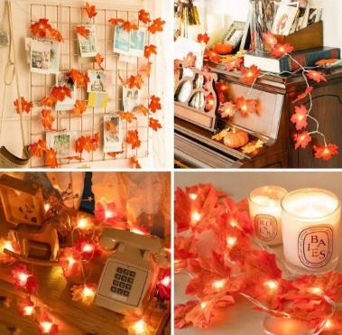 Створіть теплу, затишну атмосферу в своєму оточенні завдяки світлодіодній гірлянді довжиною до 3 метрів, прикрашеній тканинним листям в осінніх кольорах. Цілих 20 ніжних світлодіодних світильників освітлять кожен куточок, створюючи неповторну атмосферу - ідеально підходить для осінніх вечорів, Хеллоуїна або як сезонна прикраса інтер'єрів і відкритих просторів.