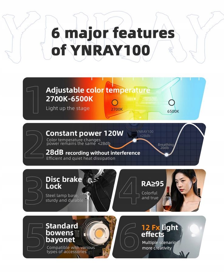 - Модель: yongnuo ynray100 KIT - WB (2700 K - 6500 K)