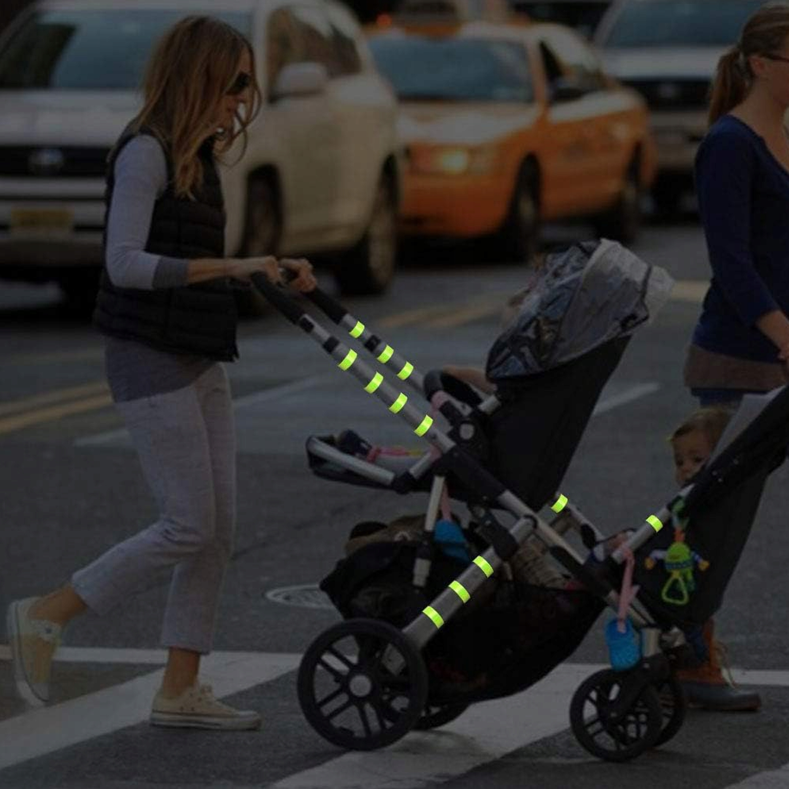 Світловідбиваюча смуга автоматично обгортається навколо зап'ястя, щиколотки або коляски, збільшуючи видимість у темряві. Завдяки їй, водії побачать вас з великої відстані - що може мати ключове значення для вашої безпеки.