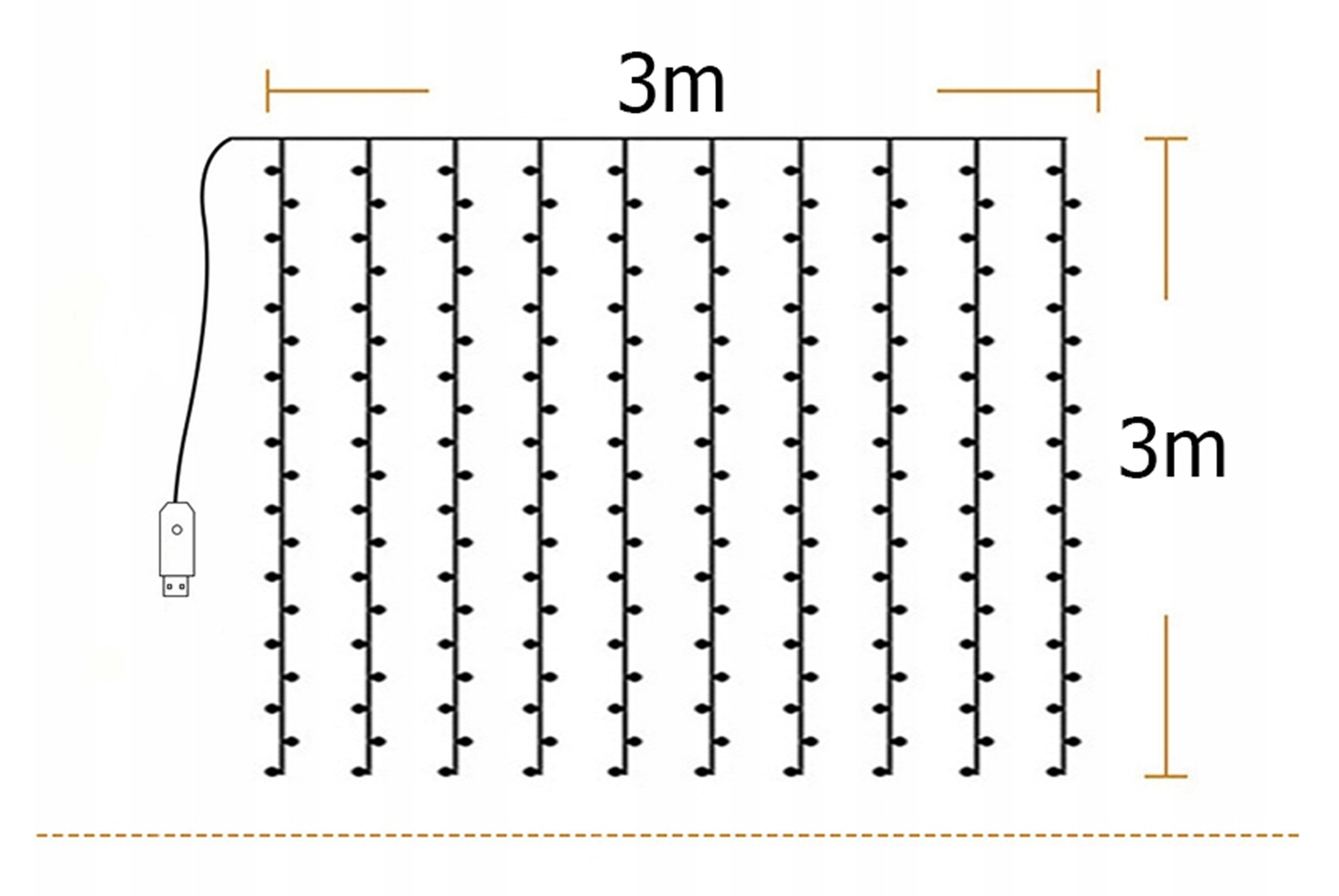 СВІТЛОВА ЗАВІСКА 300 LED ТЕПЛИЙ 3x3 USB ЯЛИНОВИЙ ГІРЛЯНД ПУЛЬТ ДИСТАНЦІЙНОГО КЕРУВАННЯ
