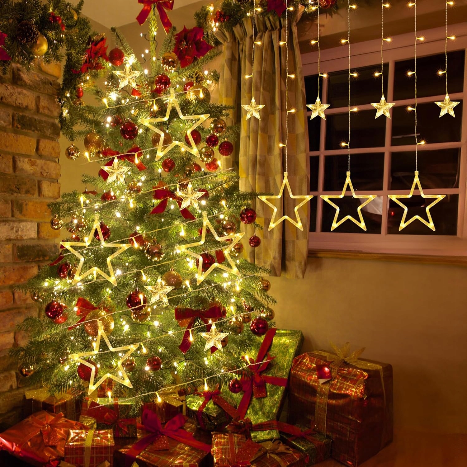 iShabao - Зоряний світловий ланцюг, 138 світлодіодів, різдвяні вогні, 2,4 х 1 м, новорічна світлова завіса з 12 зірками, внутрішній світловий ланцюг, таймер