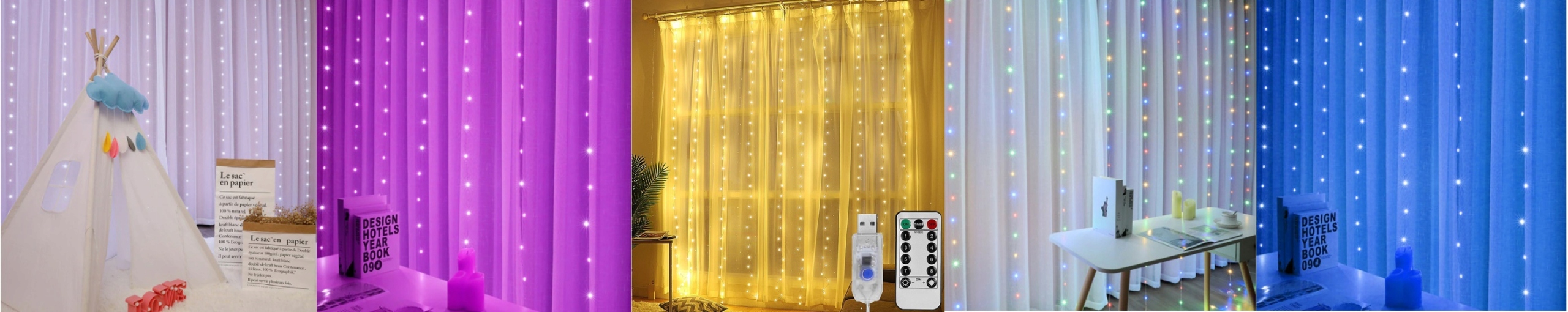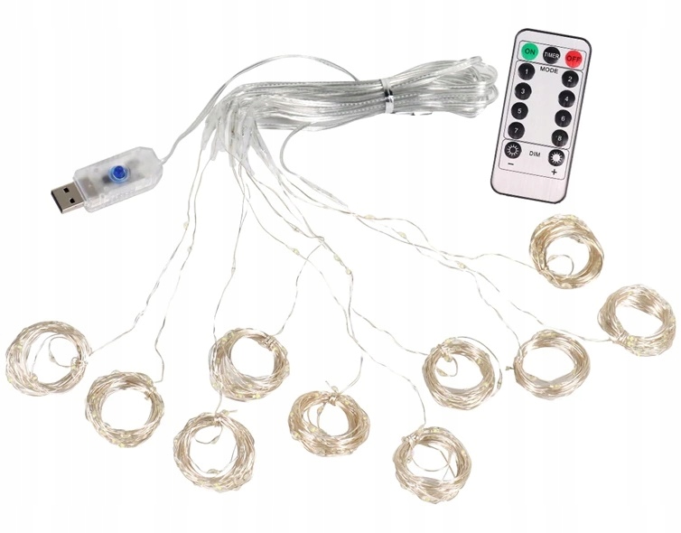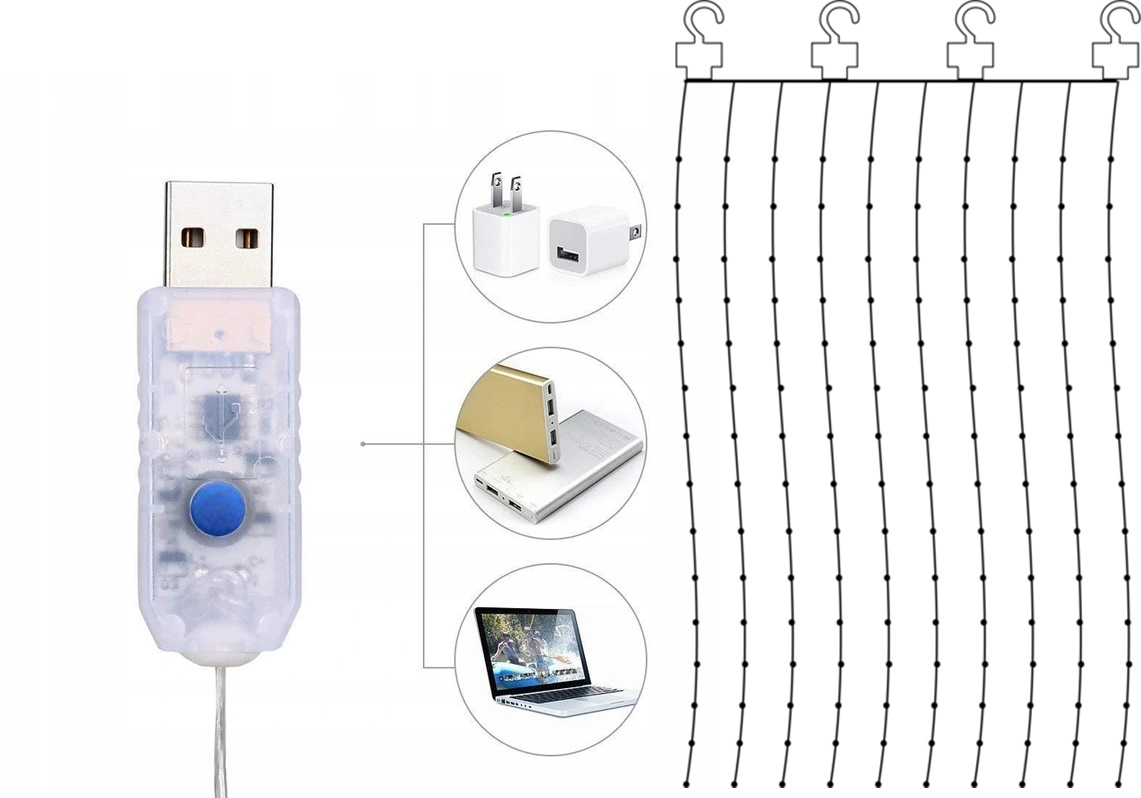 Лампи оснащені USB-портом, що дозволяє зручно заряджати за допомогою комп'ютера або інших джерел живлення. Для зручності використання ви отримуєте бездротовий пульт дистанційного керування, який дозволяє вмикати світло та налаштовувати до 8 різних режимів блимання. Додатково штора має гачки для установки