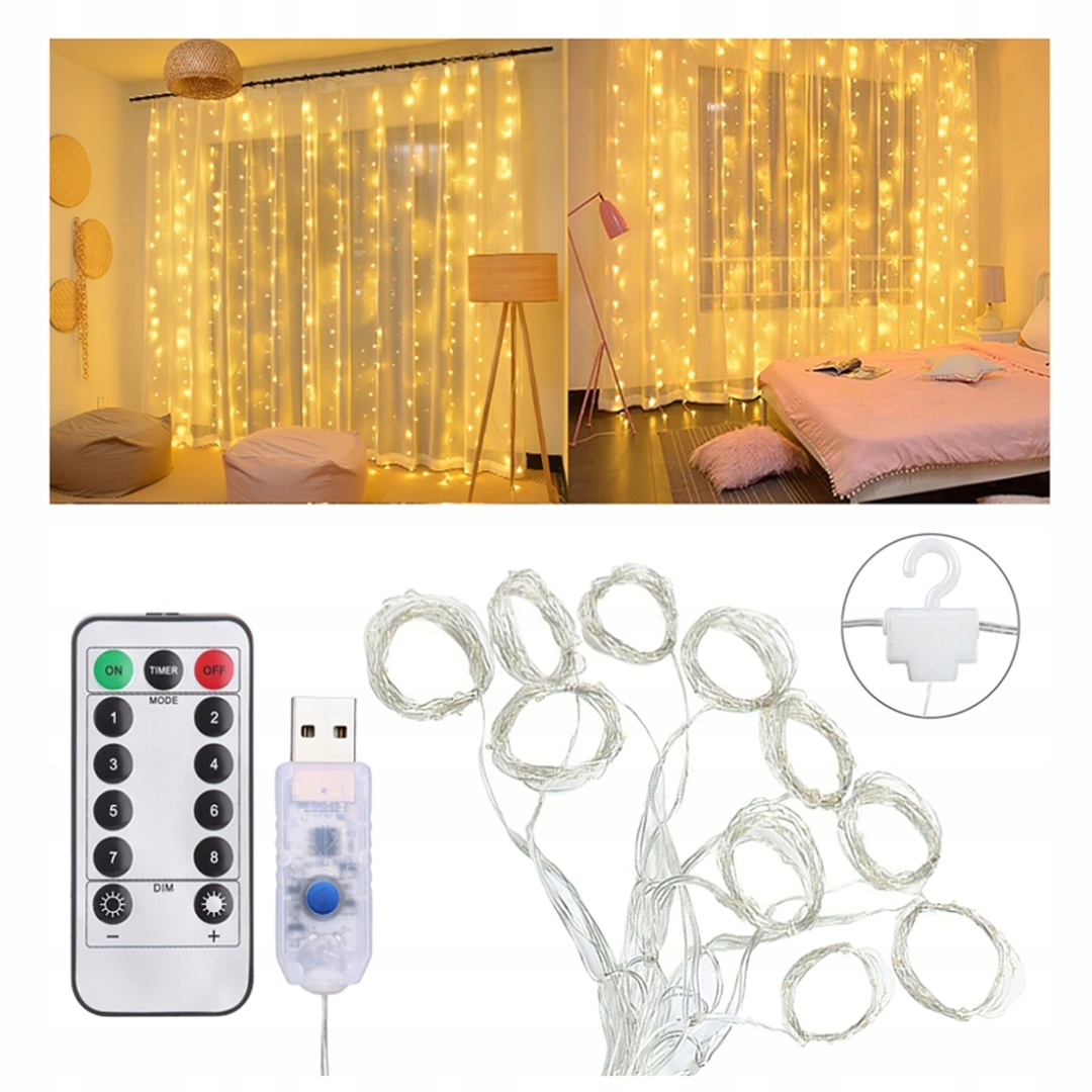 СВІТЛОВА ЗАВІСА 300 LED 3X3M З ЕНЕРГОЗБЕРІГАЮЧОЮ ТЕПЛОЮ БІЛОЮ