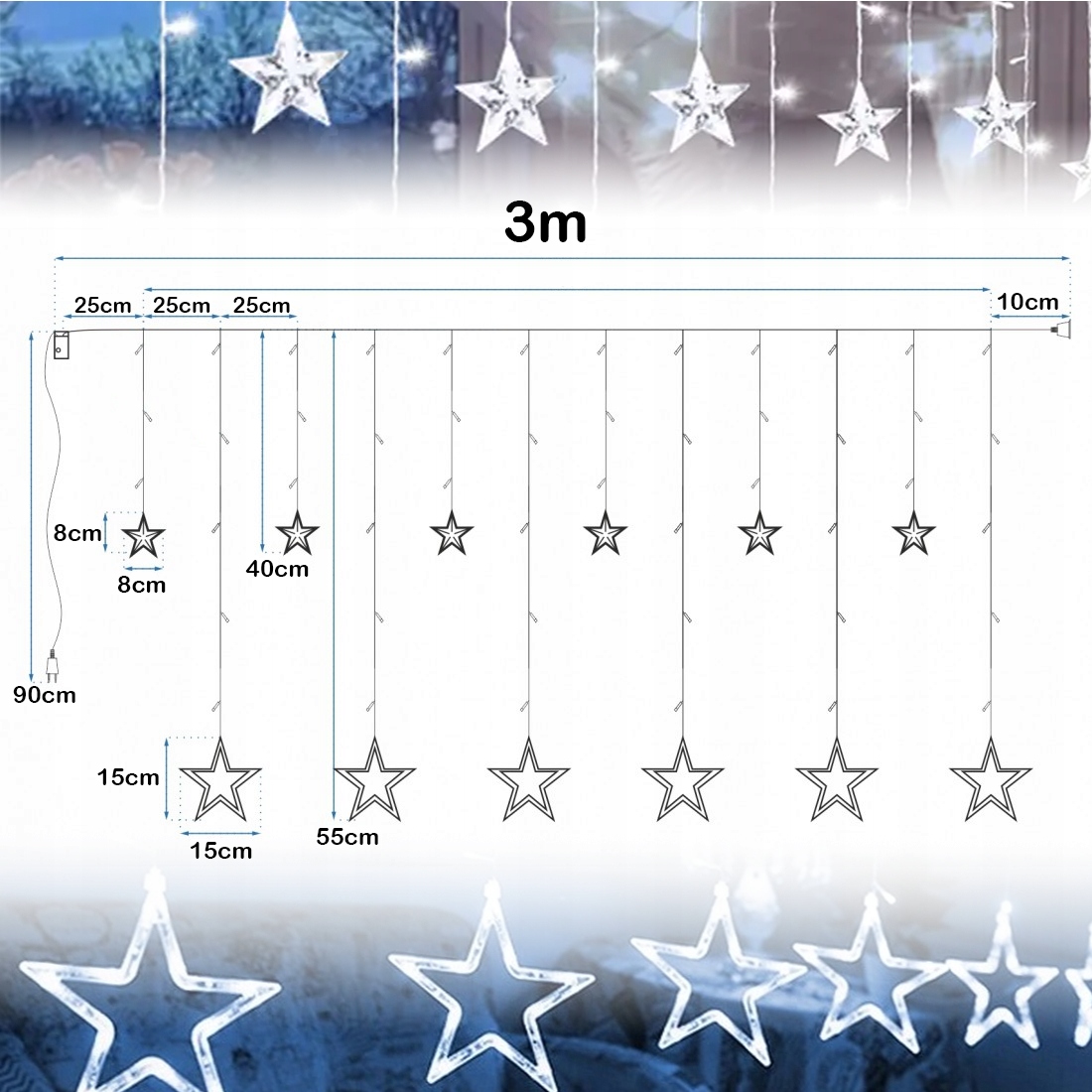 СВІТЛОВА ЗАВІСА LED ЗІРКИ ХОЛОДНО БІЛА РІЗДВЯНА ГІРЛЯНДА ДОВГА