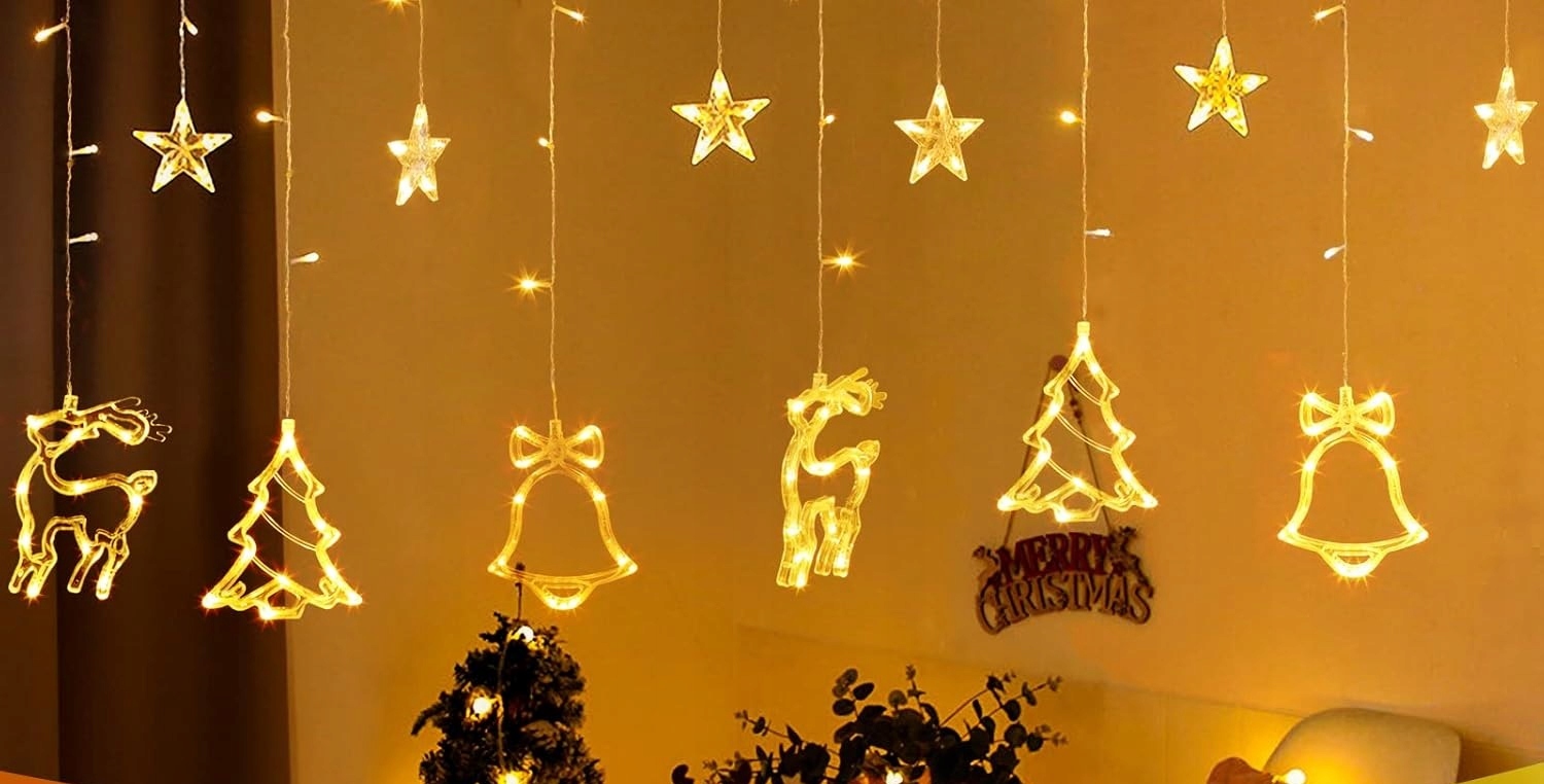 СВІТЛОВА ЗАВІСА ЗІРКИ ОЛЕНІ ЯЛИНКА ВОГНІЧКИ ГІРЛЯНДА ОЛЕНІ