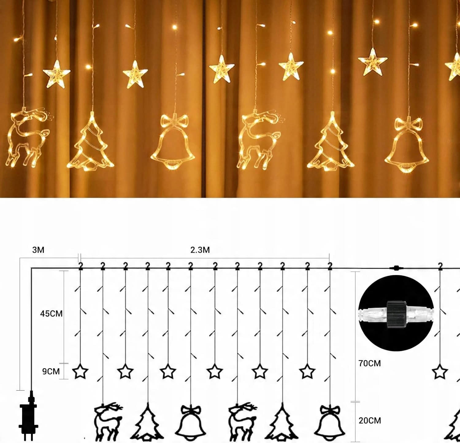 ⭐️РІЗДВЯНІ ВОГНІ ЗАВІСКА REINDEER DEERS CHRISTMAS BELLS⭐️