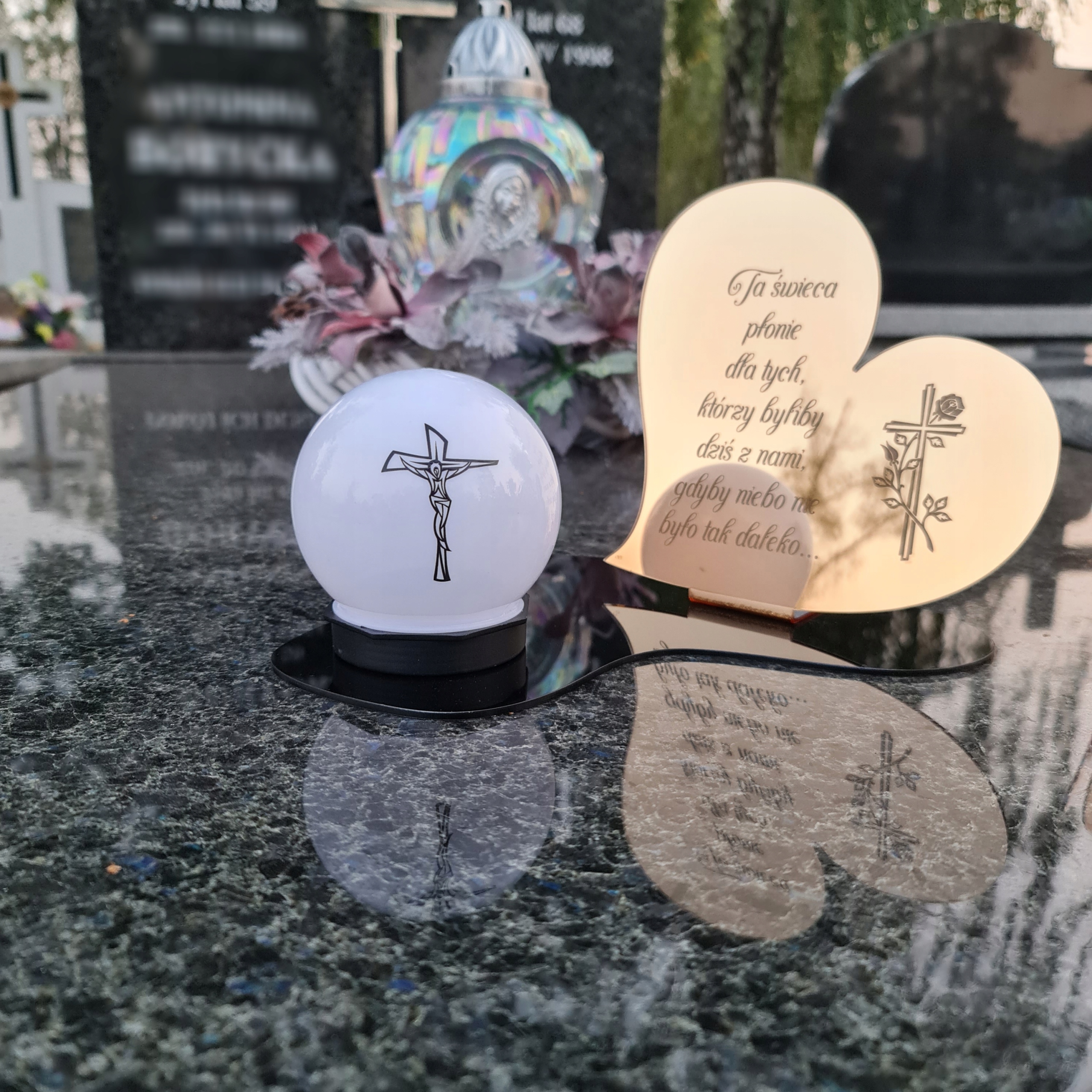 Вічна свічка на могилі з гравірованою акриловою скляною підставкою