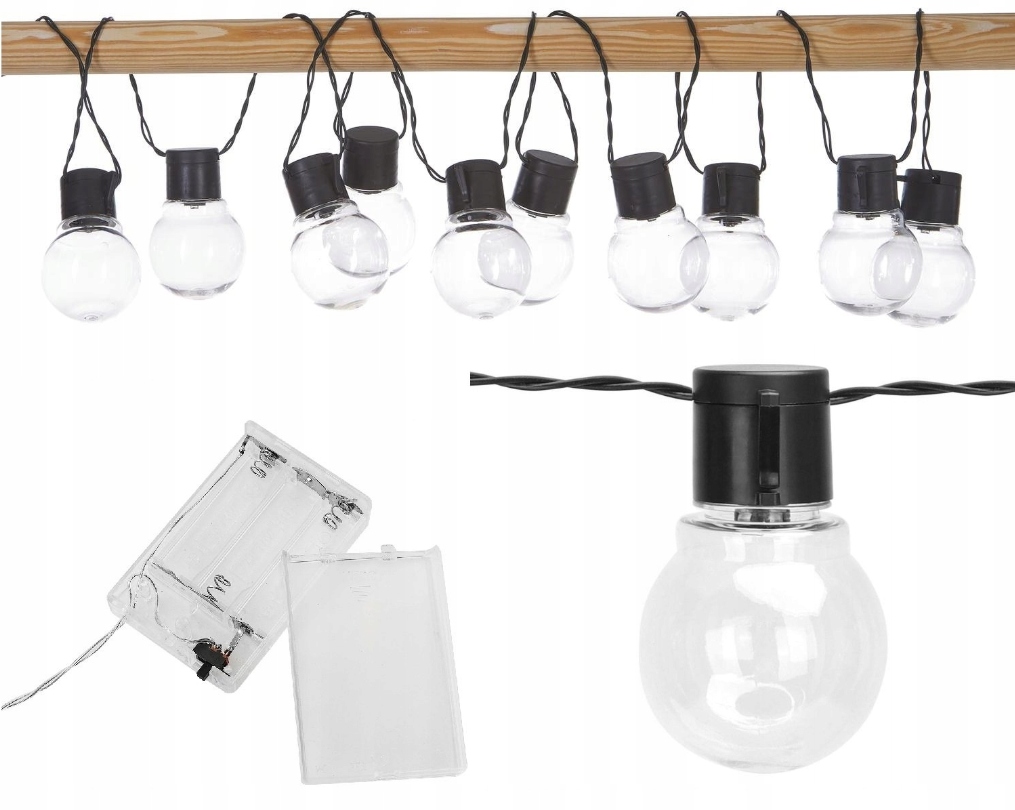 СВІТЛОВІ ГІРЛЯНДИ КУЛІ ЛАМПИ НА БАТАРЕЯХ 8 x СВІТЛОДІОДНІ ПРОЗОРІ ЛАМПОЧКИ 2,8 м