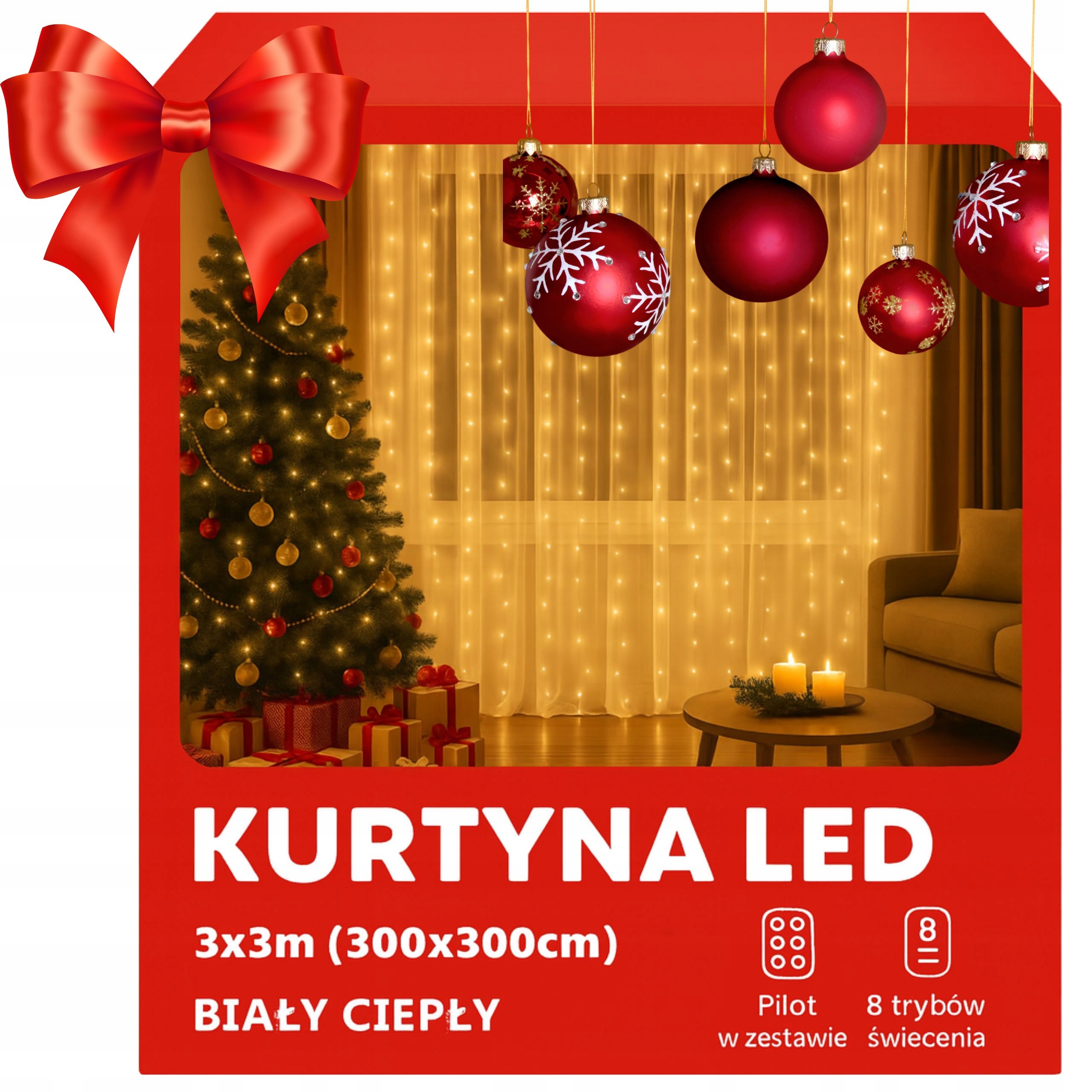 • 1x світлодіодна штора 3×3 м (300 діодів - тепле біле світло)