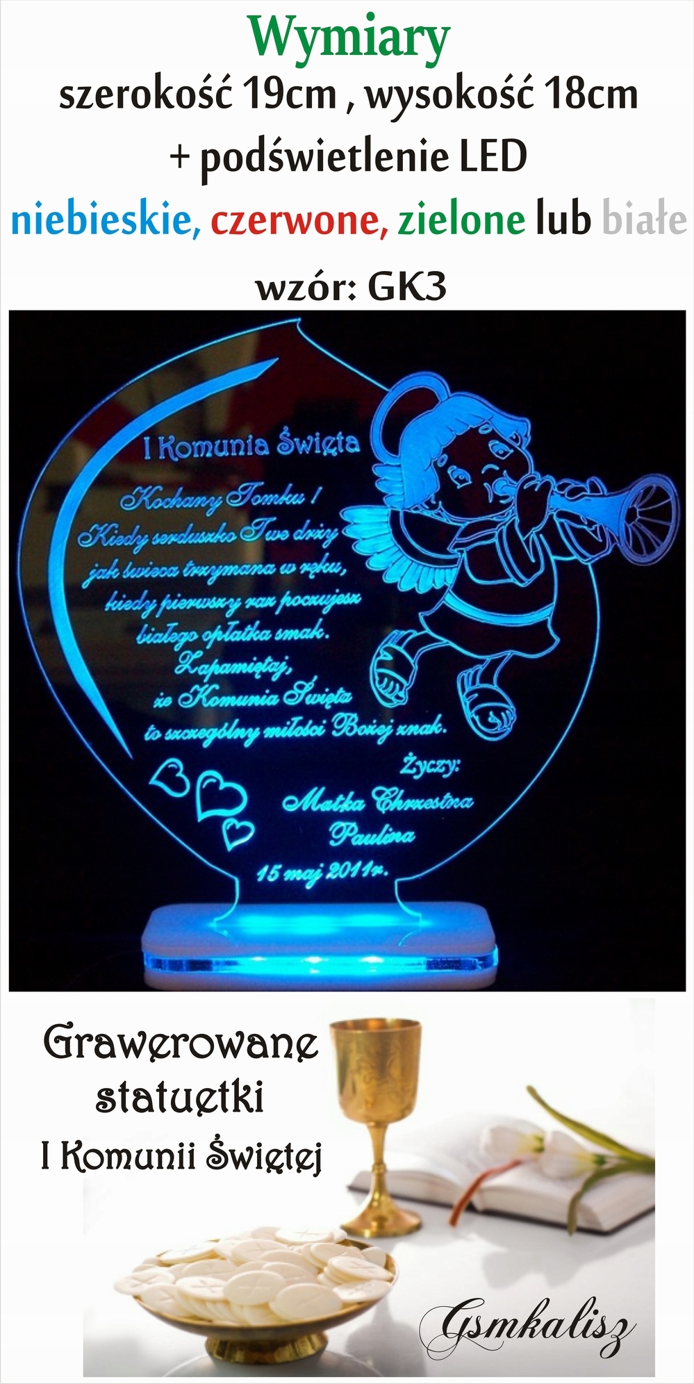 СВІТЛОВІ СУВЕНІРИ ПЕРШЕ ПРИЧАСТЯ 4 КОЛЬОРИ LED