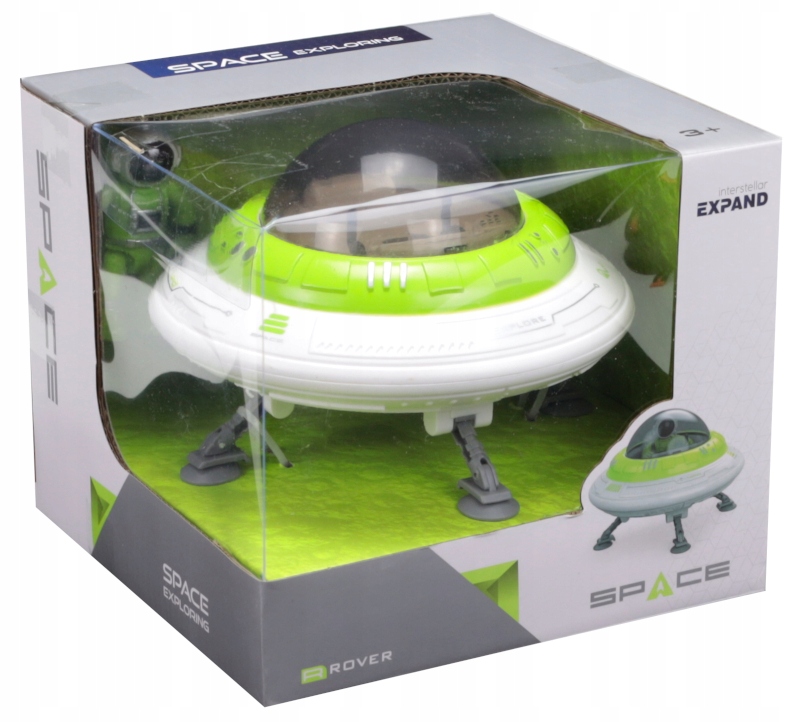 Світло в кабіні та звук космічного корабля, що запускається, активуються 3 кнопками, розташованими на кабіні. Все, що вам потрібно зробити, це підняти прозоре напівкругле скло та вийняти білу шпильку. У набір також входить фігурка космонавта. Ніжки автомобіля можна складати.
