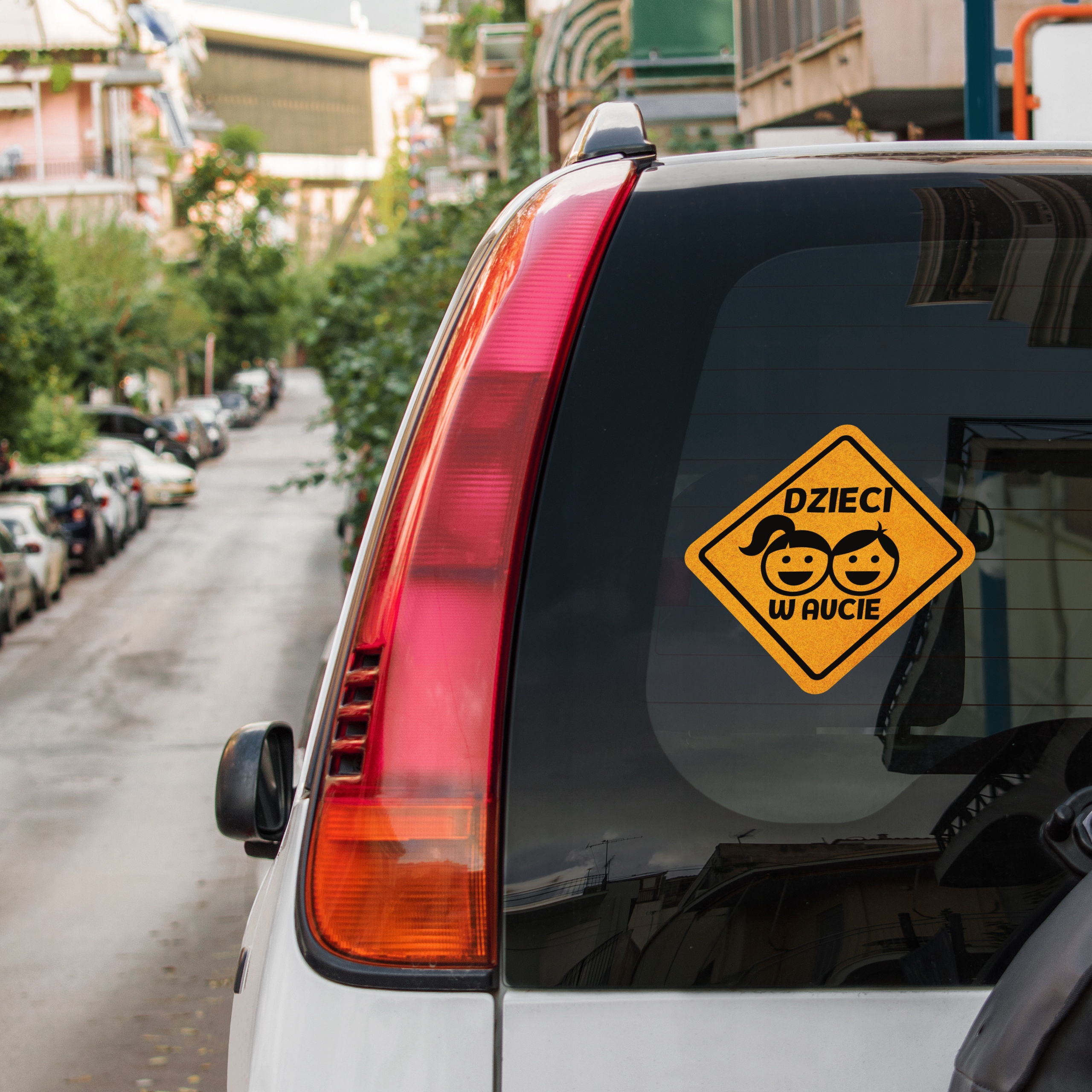 ЖОВТИЙ СВІТЛОВІДБІЛЬНИЙ СТІКЕР ДІТИ В АВТОМОБІЛІ, СТИЛЬ 007
