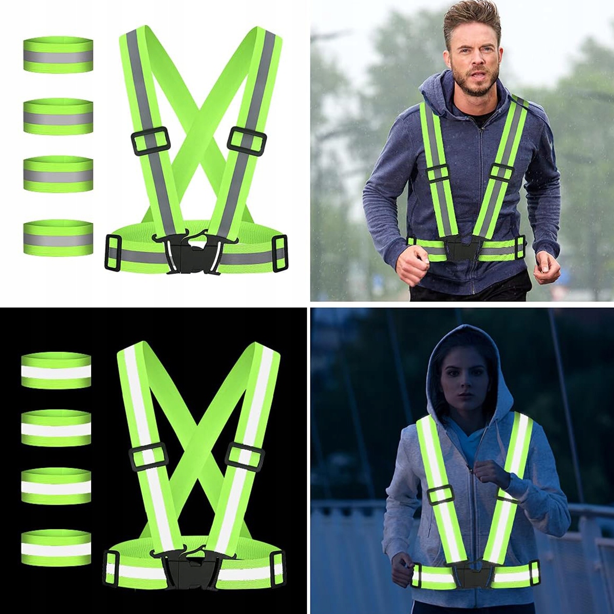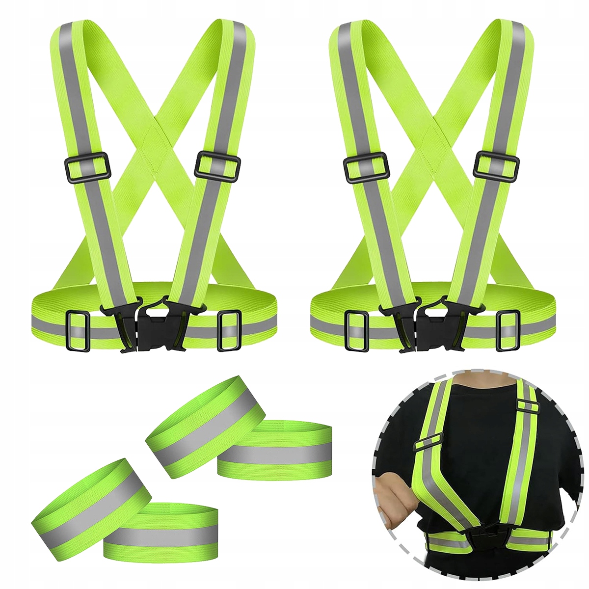 Набір світловідбиваючих жилетів, 2 регульованих світловідбиваючі жилети та 4 еластичні світловідбиваючі стрічки, світловідбиваючі елементи для їзди на велосипеді, бігу, бігу та походів (флуоресцентно-зелений)