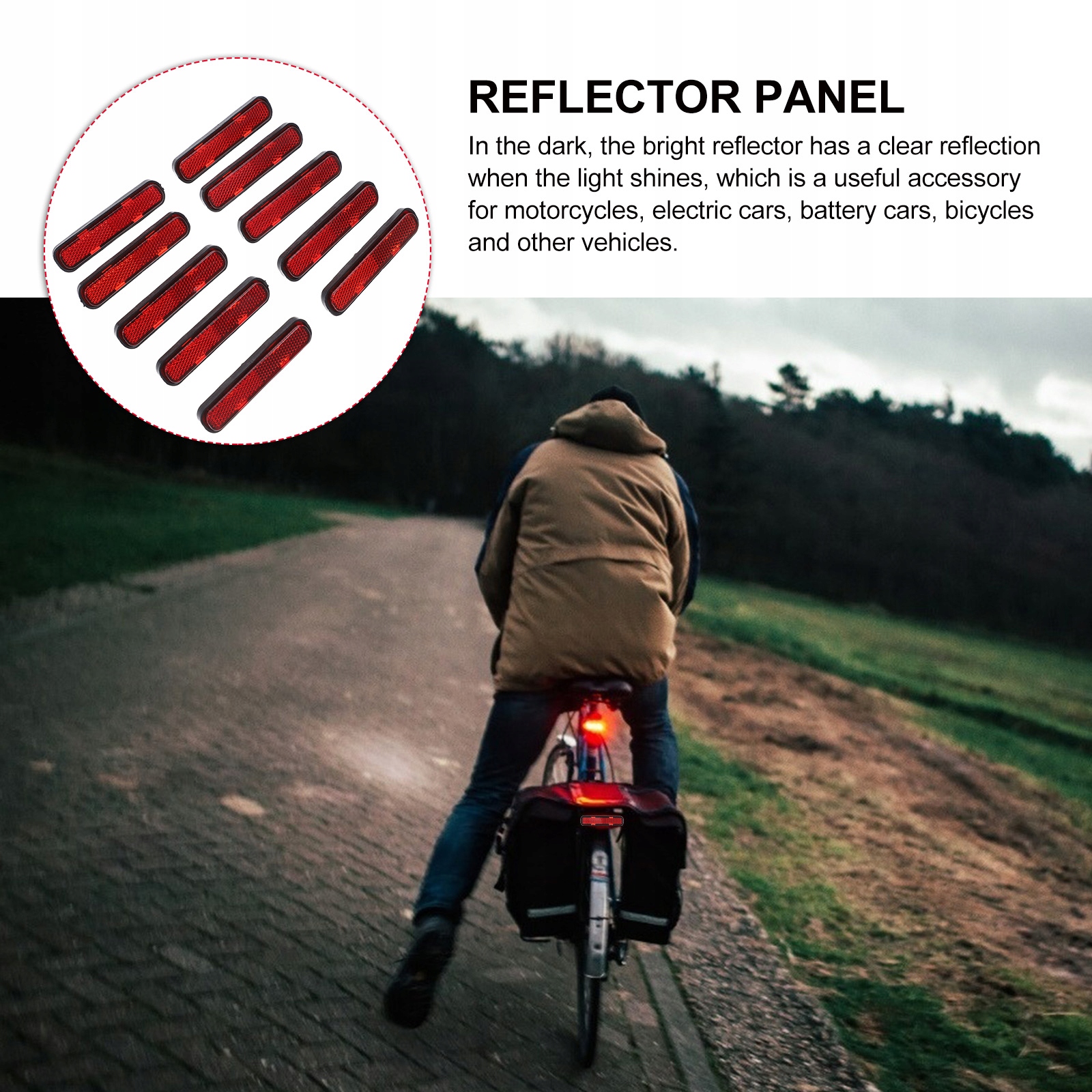 У темряві світло -відбивач має чітке відбиття, коли світло потрапляє, корисний аксесуар для мотоциклів, електромобілів, велосипедів та інших транспортних засобів.