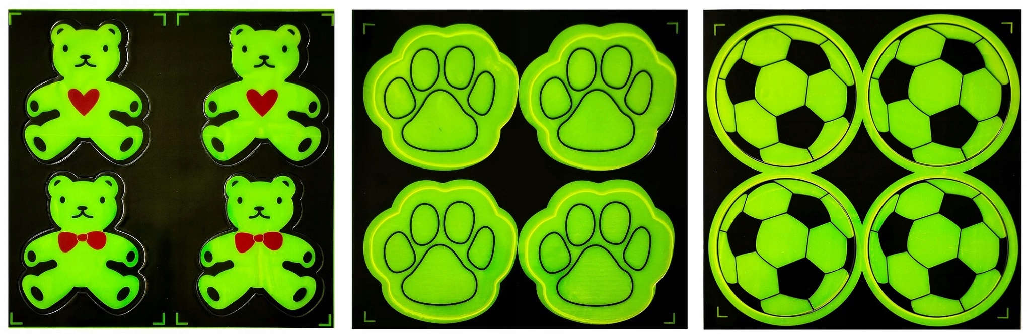 Незамінні в кожному домі, вони покращать безпеку вашої дитини під час прогулянки, повернення зі школи, під час гри тощо. Наклейки дуже добре відбивають світло, дякую на якому ваша дитина стає більш помітною для водіїв та інших учасників дорожнього руху.