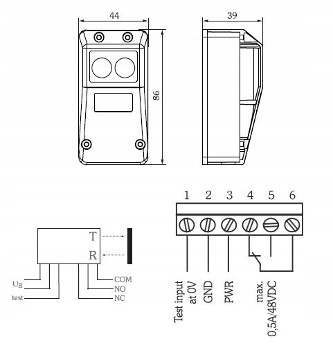 - фотопередавач і фотоприймач зі світлодіодною індикацією активації