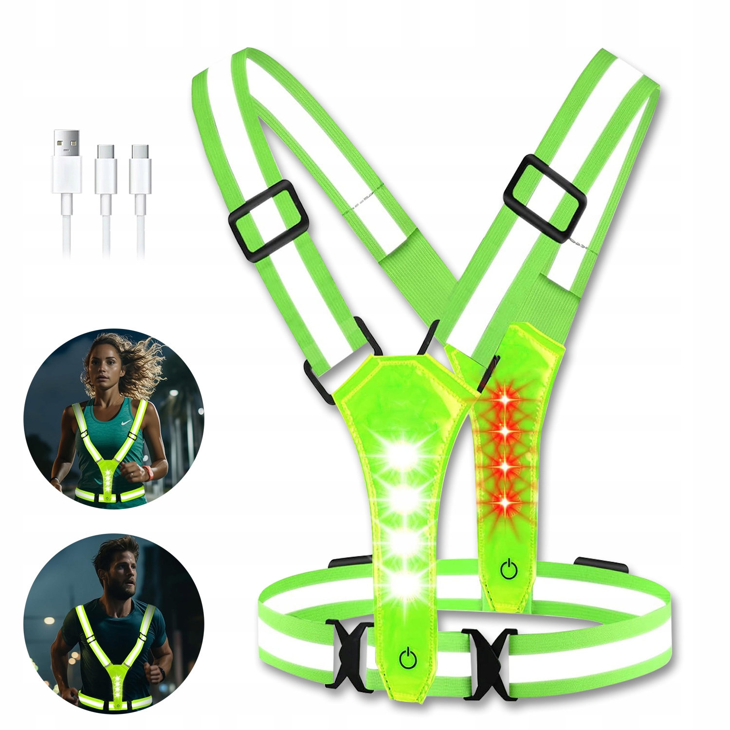 СВІТЛОДІОДІОДНИЙ ЖИЛЕТ ДЛЯ БІГУ, ПРОХОДЖЕНЬ, ВЕЛОСИПЕДА, ЗЕЛЕНИЙ