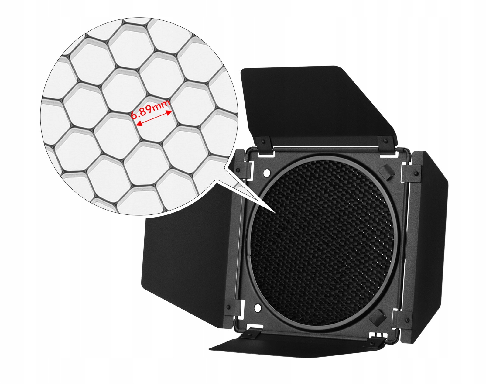 Набір дверей для сараю можна встановити на стандартний 7-дюймовий відбивач. З 4 пелюстками для гнучкого формування освітлення. Світло можна сконцентрувати відповідно до ваших потреб.
