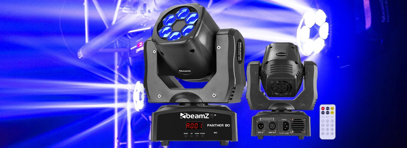 Panther 80 можна керувати кількома способами. За допомогою пульта дистанційного керування, що входить у комплект, все стає дуже просто, і ним може керувати кожен. Крім того, рухома головка може працювати за однією із попередньо запрограмованих програм, щоб вибрати або реагувати на звук за допомогою вбудованого мікрофона. Для більш досвідчених користувачів Panther 80 також можна керувати через DMX через 12 каналів. Тому Panther 80 пропонує достатньо можливостей як для початківців, так і для досвідчених користувачів.
