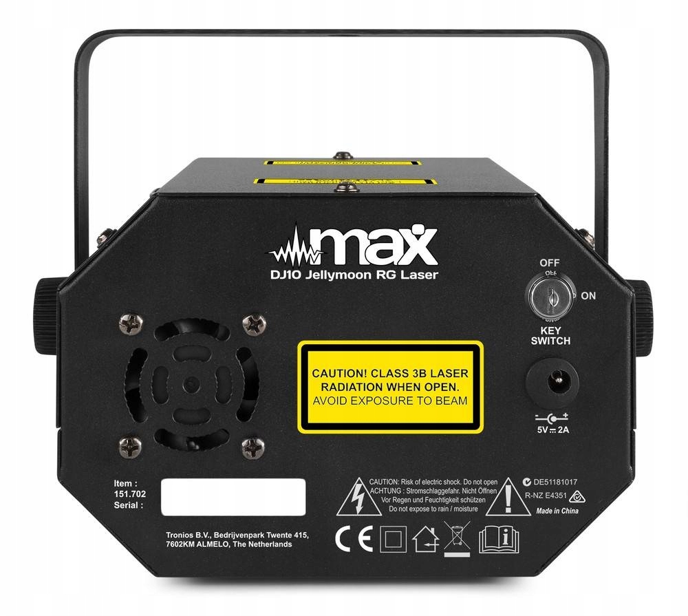 Як і з усіма світловими ефектами, MAX DJ10 працює, також найкраще з машиною для створення туману, доступні різні моделі на інших наших аукціонах. Легкий туман димової машини робить світлові та лазерні промені від DJ10 видимими, надаючи світловому шоу чудовий 3D-ефект.
