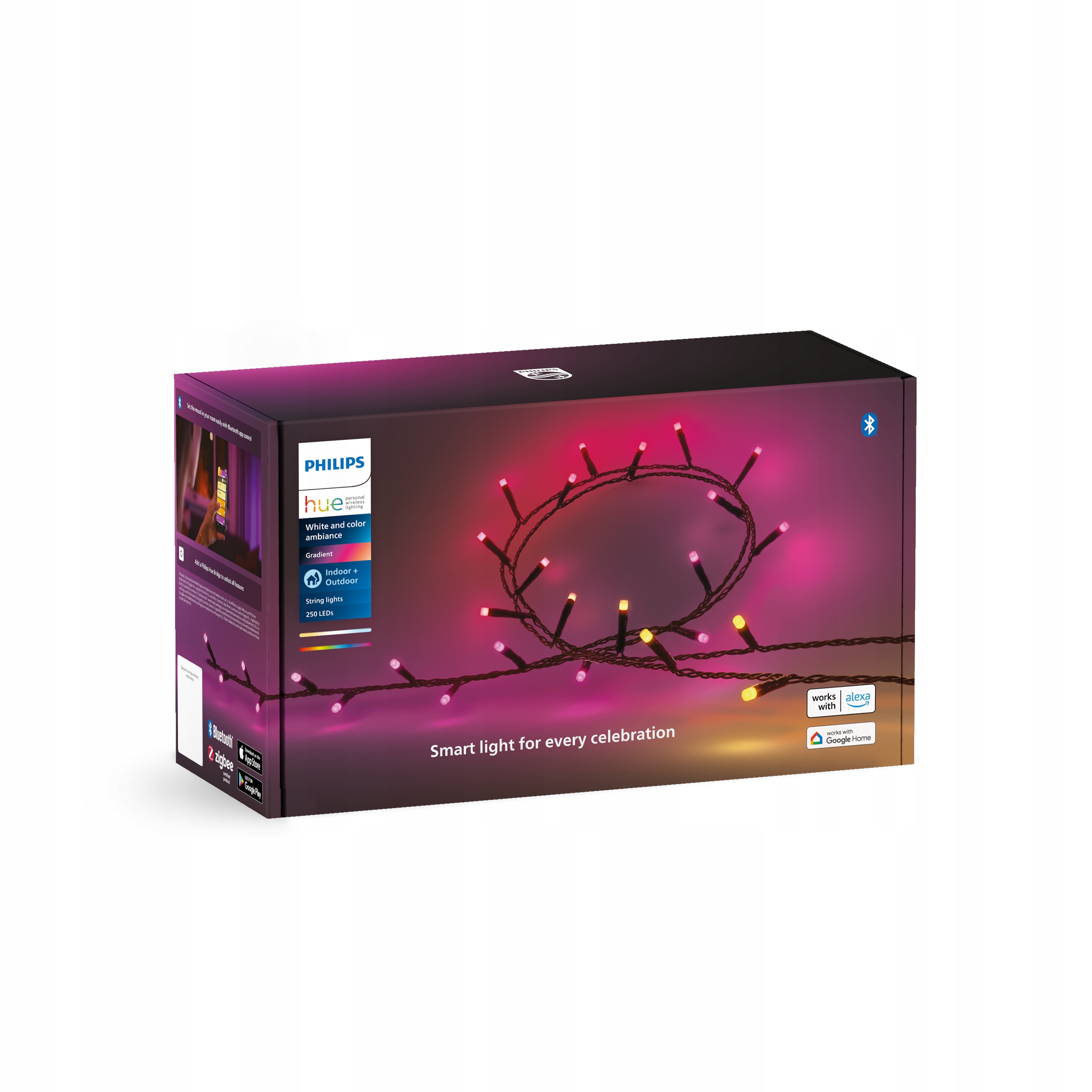 Інтелектуальний світловий ланцюг HUE Festavia від відомої та шанованої компанії Philips із 250 інтелектуальними мініатюрними світлодіодами на 20- метровий кабель, це ефектна прикраса інтер'єру будинку та відкритих майданчиків. Світильники наповнюють простір широким спектром кольорового та білого світла, дозволяючи створити приємну та атмосферну атмосферу, яка підходить для будь-якого випадку. Гірлянда забезпечує плавний перехід кольорів по всьому дроту, дозволяє вибрати ефект Glow або Prism або встановити один колір для більш традиційного ефекту. Він простий в установці і міцний, що гарантує тривале використання в різних погодних умовах. Ідеально підходить для створення неповторної атмосфери під час зустрічі з родиною та друзями на природі.