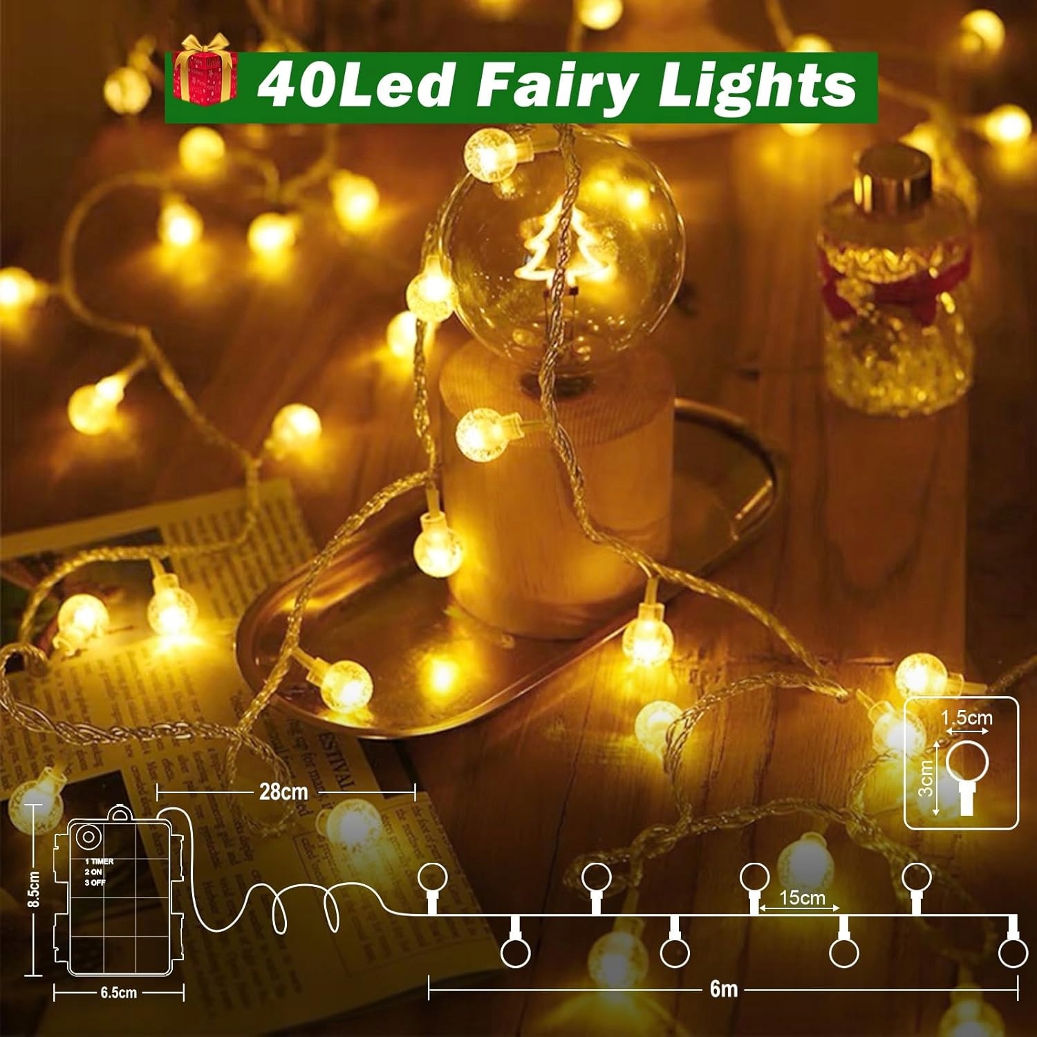 Світловий ланцюг для акумуляторів, таймера, водонепроникності, 40 світлодіодів та 6м