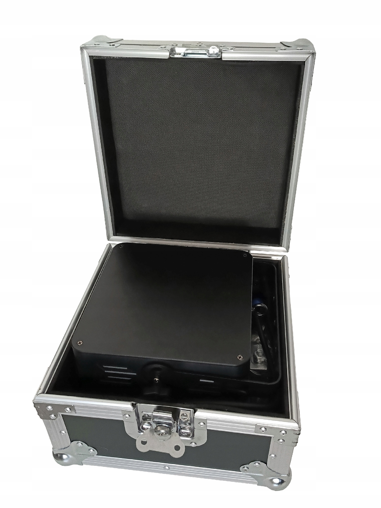 Технічні характеристики продукту: A) Розміри валізи/кейсу: ⦁ Довжина: 34 см ⦁ Ширина: 34 см ⦁ Висота: 24 см B) Розміри лазера ⦁ Довжина: 23 см ⦁ Ширина: 27 см ⦁ Висота: 18 см Вага пристрою: 5,8 кг Потужність: 10 Вт Тип лазера: RGB (червоний, зелений, синій) Застосування: сцена, клуб, подія Живлення: стандартний шнур живлення 100-250 В, 50/60 Гц в комплекті Монтаж: монтажний кронштейн в комплекті, страхувальний трос