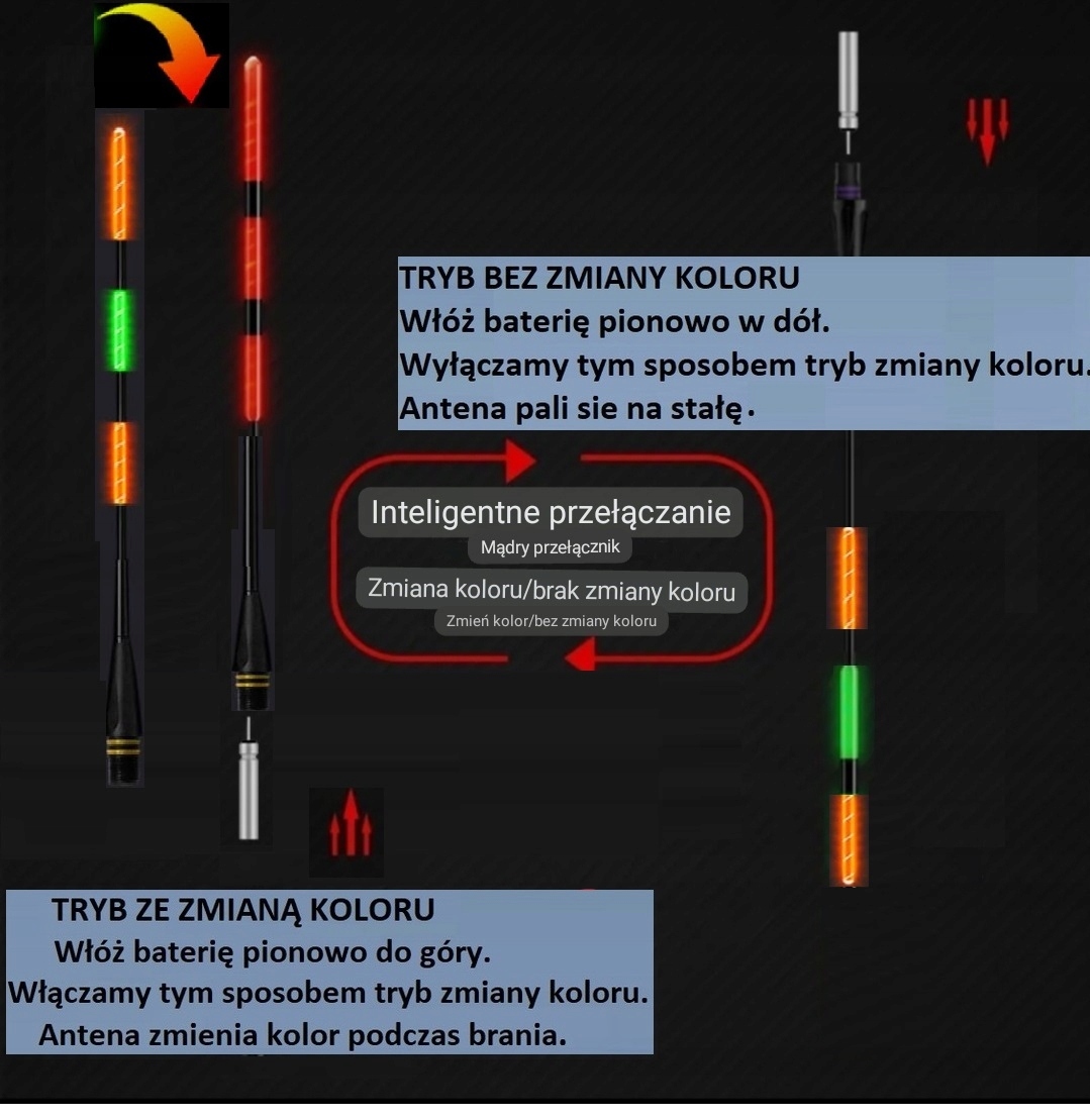 1 - з датчиком - щоб активувати датчик клювання, вставте вставте батареї в антену знизу, тримаючи антену в руках вертикально верхньою частиною вгору.