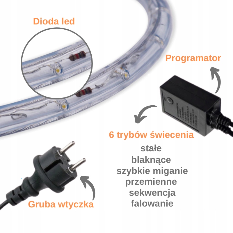 - Світловий шланг - це дуже ефектна і практична прикраса для дому та саду. Він ідеально підійде як прикраса для вітрин і вітрин.
