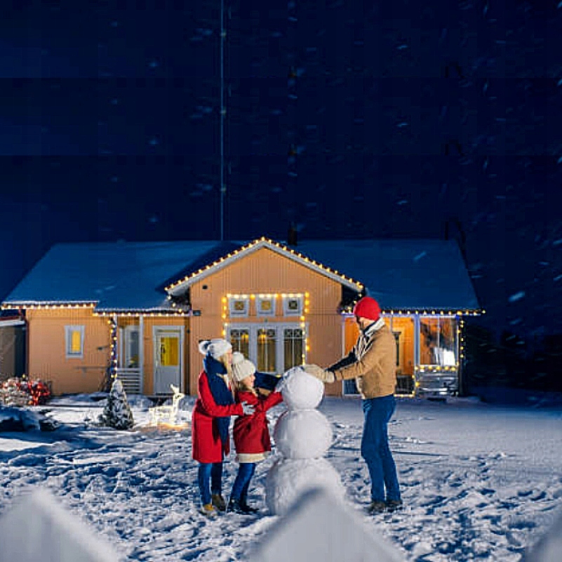 Гарно освітлений сад, як задній двір «Сам удома», і ви з дітьми будуєте сніговика. Запевняю, ці моменти, проведені разом, запам’ятаються вам і вашій родині надовго. Завдяки світлодіодним метеоритам ви відчуєте цьогорічні свята на собі