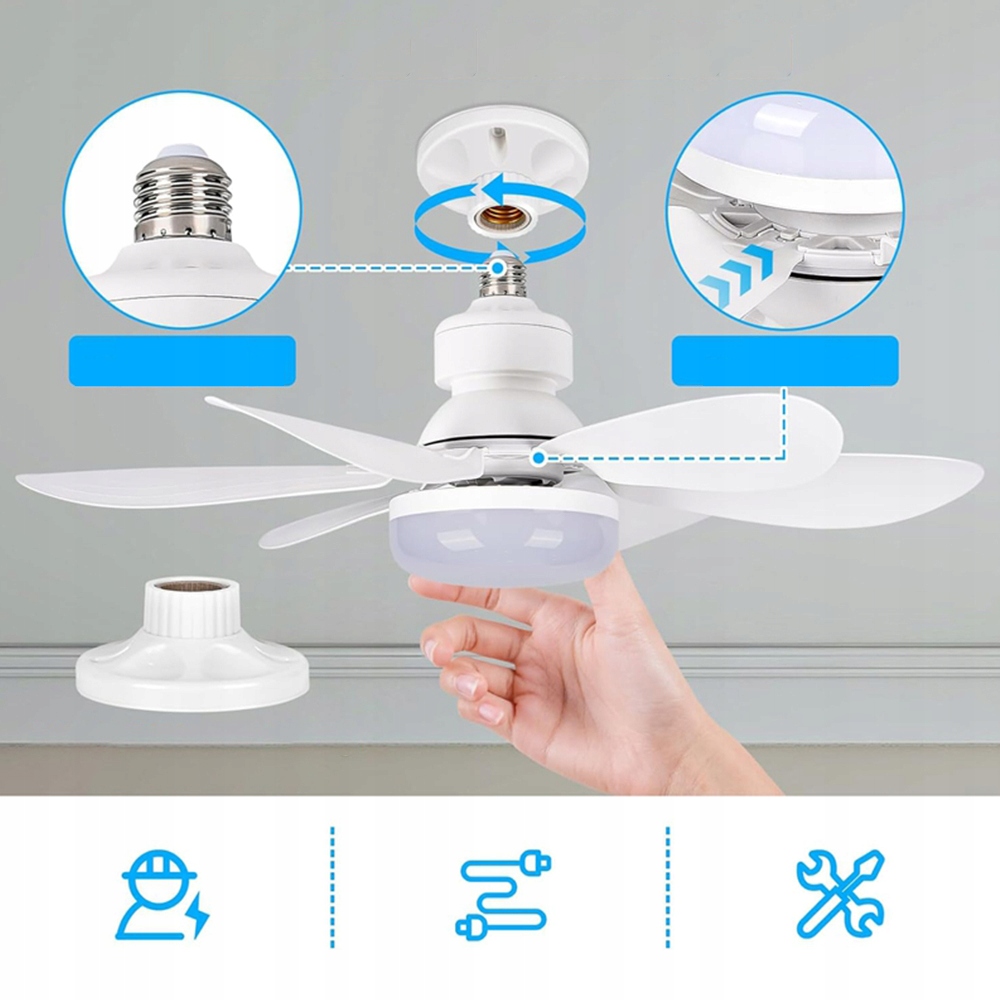 -dostarczany jest ze standardowym uchwytem na żarówkę e26/e27. Крім того, він оснащений універсальною ниткою E26/E27, яка сумісна з більшістю ручок лампочки і може бути легко закручена в існуючу ручку лампочки без використання інструментів або електриків. Лопатки вентилятора видаляються для легкого очищення та обслуговування, завдяки якому вентилятор завжди залишається чистим та акуратним.