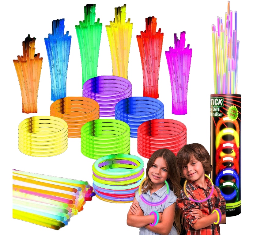 ⭐БРАСЛЕТИ, ПАЛИЧКИ, ФЛУОРЕСТЕНТОВІ СТРУЖКИ 100 шт + КОНЕКТОРИ + КОРОБКА⭐