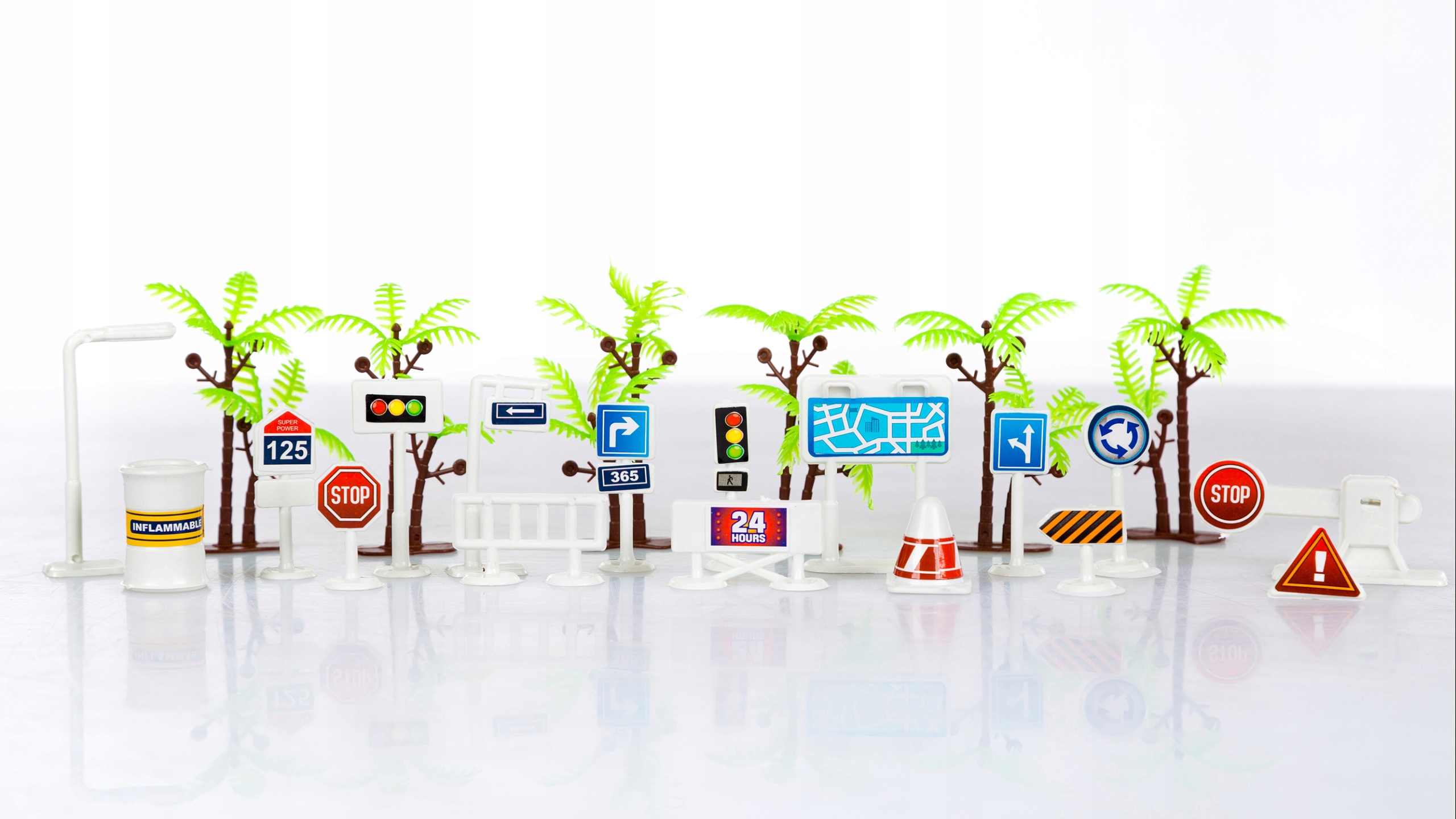 Знаки та дерева, що входять до набору, стимулюватимуть уяву вашої дитини та допоможуть їй перенестися у світ веселощів!