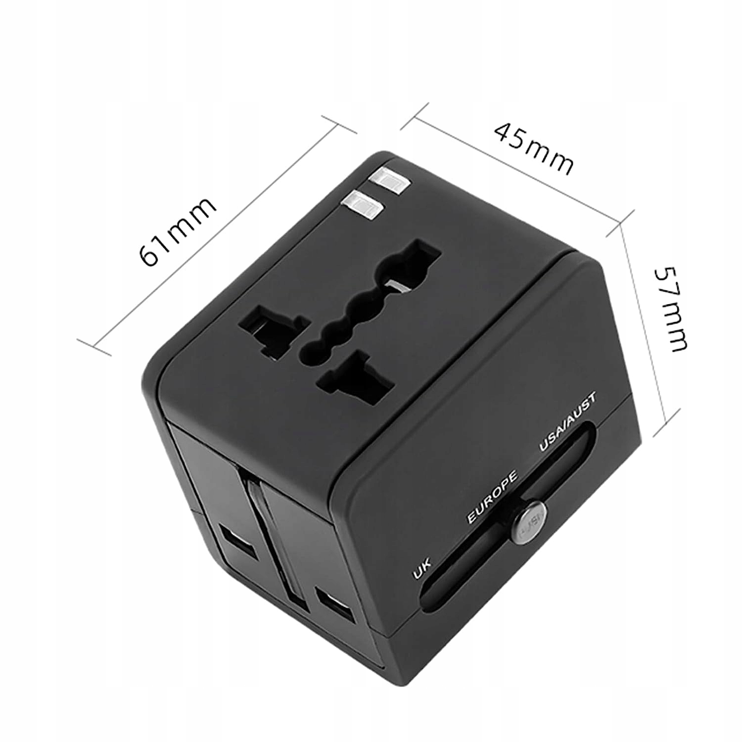 Куб із вбудованими 2 портами USB можна використовувати як розгалужувач, якщо в місці, де ви зупинилися, недостатньо електричних розеток.