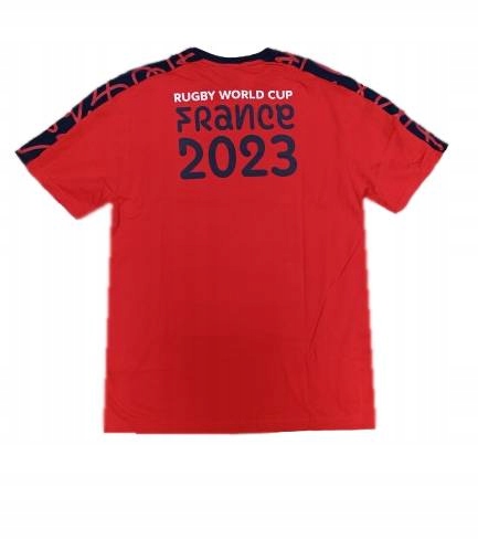 Червона t -сорочка, прикрашена графікою, збагачена офіційним логотипом турніру та унікальними написами, пов’язаними з чемпіонатами. Кожна деталь наголошує на справжності та стосується захоплюючої атмосфери світового регбі.