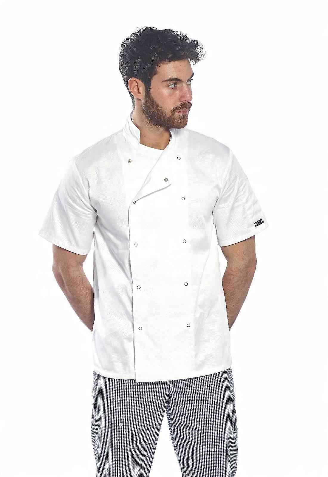 Сучасний кухарський світшот з коміром-стійкою з легкої та міцної тканини з дуже хорошими параметрами. Забезпечує гарний зовнішній вигляд навіть під час тривалої роботи та після багатьох прань. Застібається на кнопки. На рукаві є кишеня для ручок.