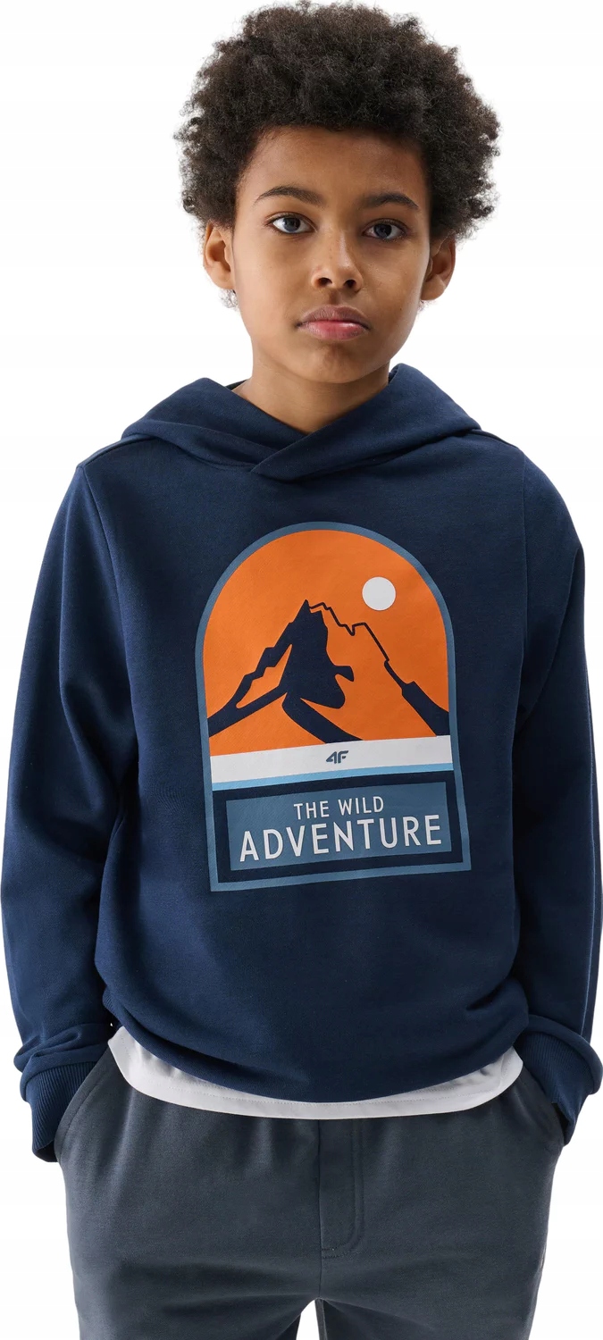 Світшот для хлопчика 4F - зручний і стильний варіант для активних хлопців. Виготовлений з м'якої бавовни, забезпечує комфорт і повітропроникність. Вбудований капюшон захищає від вітру, а ребристі манжети на рукавах і низу забезпечують ідеальну посадку. Світшот має декоративне зображення спереду та логотип бренду, що додає стилю та характеру. Цей світшот - ідеальний вибір для активних хлопців, які цінують комфорт і стиль.