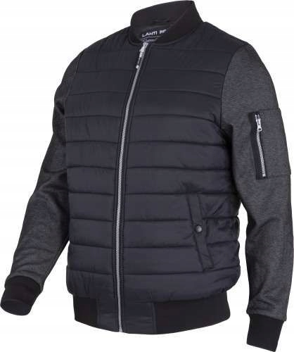 Бомбер Lahti Pro L40937 - це різновид укороченої куртки на блискавці. Має манжети на талії і в кінці рукавів і дві кишені з боків. Крім того, на ньому немає коміра. Має універсальний і модний крій. Його можуть носити як чоловіки, так і жінки. Оболонка бомбера - 100% нейлон щільністю 38 г/м² (тканина з просоченням, що захищає від вбирання води) і трикотажне полотно 97% поліестер, 3% еластан, 270 г/м². Утеплювач: 160 г/м², Підкладка: тафта 68 г/м² Чотири кишені, три зовнішні, одна на блискавці, одна внутрішня. Стьобання на тілі забезпечує відмінну ізоляцію від холоду. Рукава з м'якої та еластичної тканини "джинс", утеплені зсередини. Манжети і низ світшота оброблені еластичною манжетою. Теплий, м'який і легкий для щоденного використання. Бомбер застібається на блискавку. Куртки бомбери мають декларацію CE та відповідають стандарту EN ISO 13688.