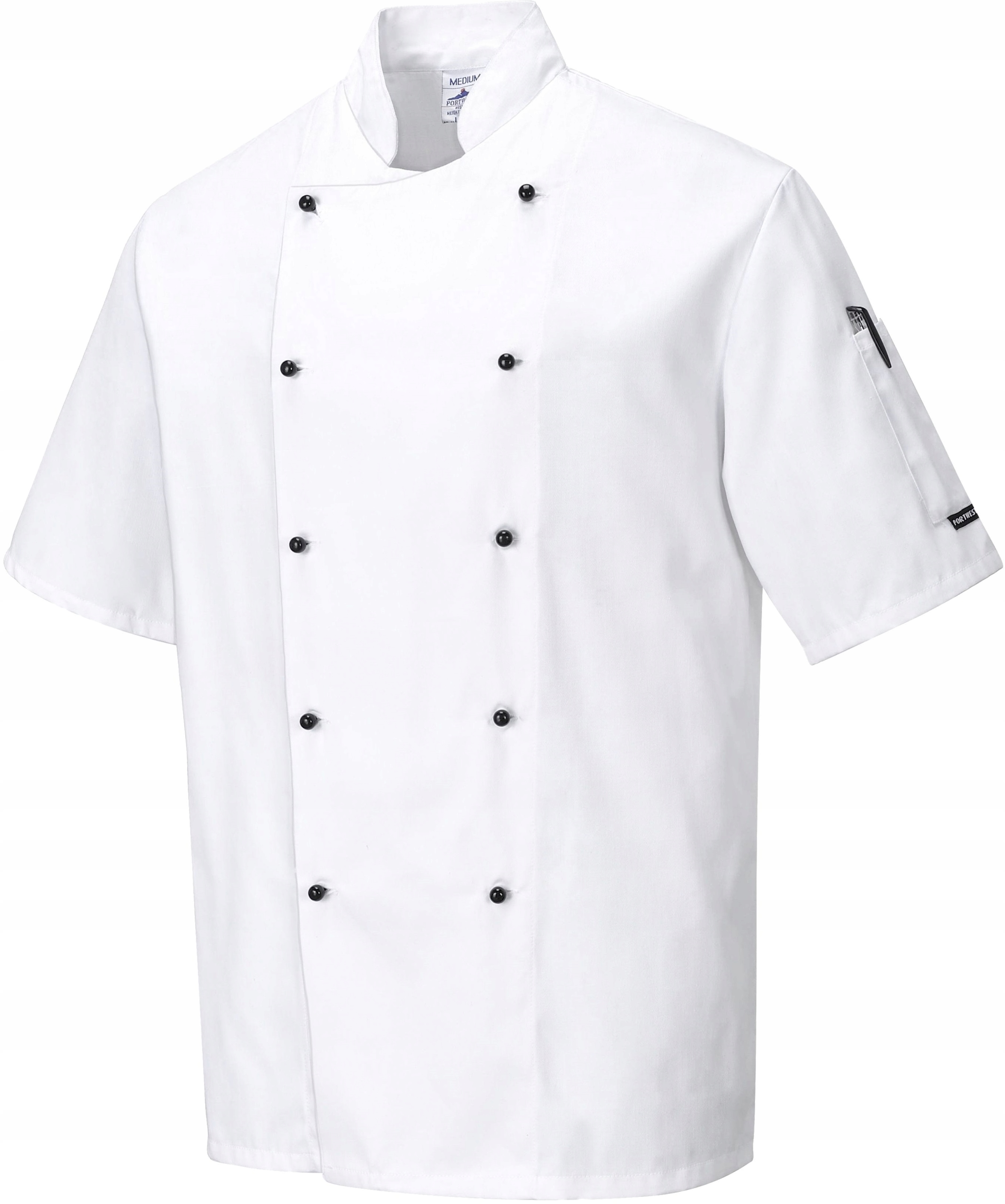 Світшот кухарський з коротким рукавом, призначений для роботи в ресторанах, виготовлений з дуже міцної тканини діагонального плетіння, стійкої до зміни кольору. Він має знімні кнопки, які можна зняти або замінити.