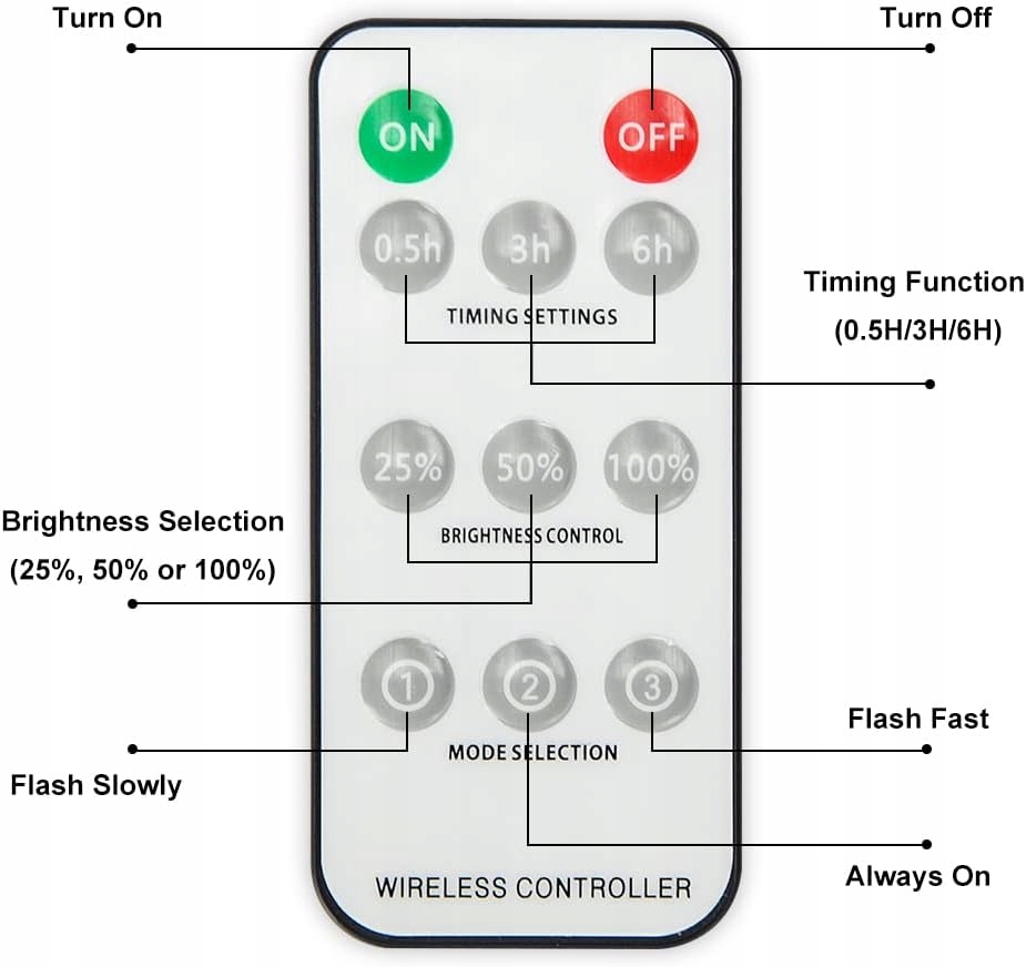 - 360° бездротовий пульт дистанційного керування - кожна літера BABY має окрему кнопку перемикання та живиться від 2 батарейок типу АА. Бездротовий пульт дистанційного керування на 360 градусів, один для підсвічування літер BABY. Доступні 3 налаштування часу: 0,5 год, 3 год і 6 год. Ви можете вибрати один з 3 рівнів яскравості: 25%, 50% або 100%. Лампа алфавіту може блимати швидко, повільно або постійно.