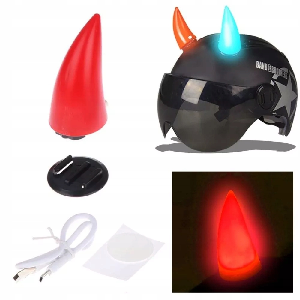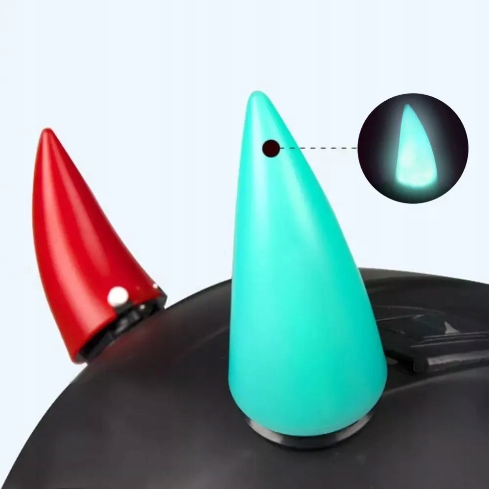 Ріжки пластикові декоративні з LED підсвічуванням. Кріпиться на шолом двостороннім скотчем (в комплекті). Вони виготовлені з пластику і мають форму ріжків. Основна функція — прикрашати шолом і забезпечити безперервне світло. Кожен кут оснащений вимикачем і роз'ємом USB C для зарядки вбудованого акумулятора.