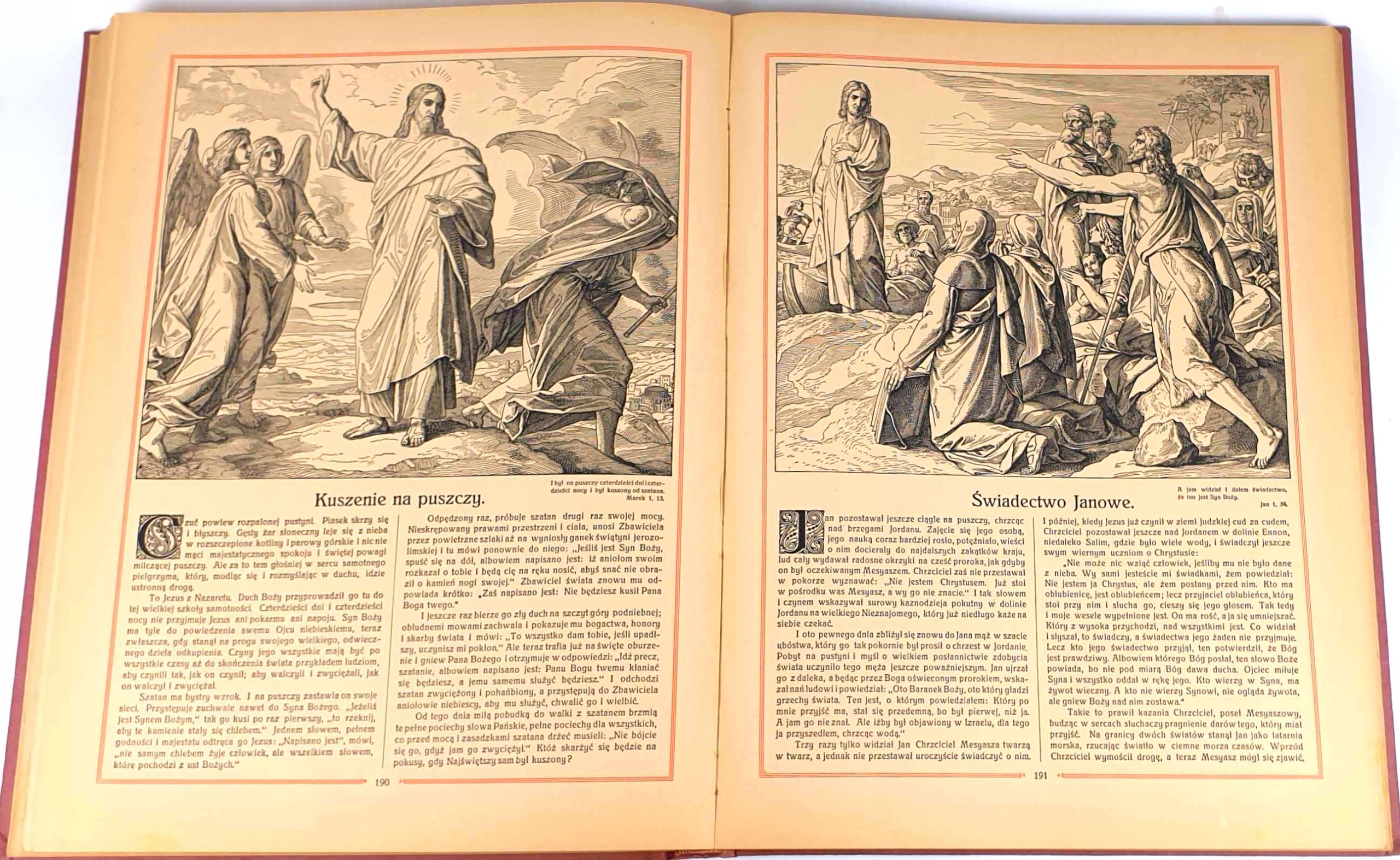 4 - Отець Юзеф Клос у співпраці з видатними діячами Церкви міжвоєнної Польщі: єпископами та професорами, поєднувався з прекрасними мистецькими репродукціями "згідно з оригіналами найкращих майстрів", що ілюструє та пластик, що пояснюють відібрані персонажі та епізоди старих та нових заповітів.про цінність "Святого Письма в картинах" не тільки демонструє в ньому апостольське благословення, але й думки видатних церковних сановників - польських та іноземних: князя Метрополітен Сап'є, генерал -вікарія та єпископа Суфраган, єпископа Базеля та Лугано та монастиря.