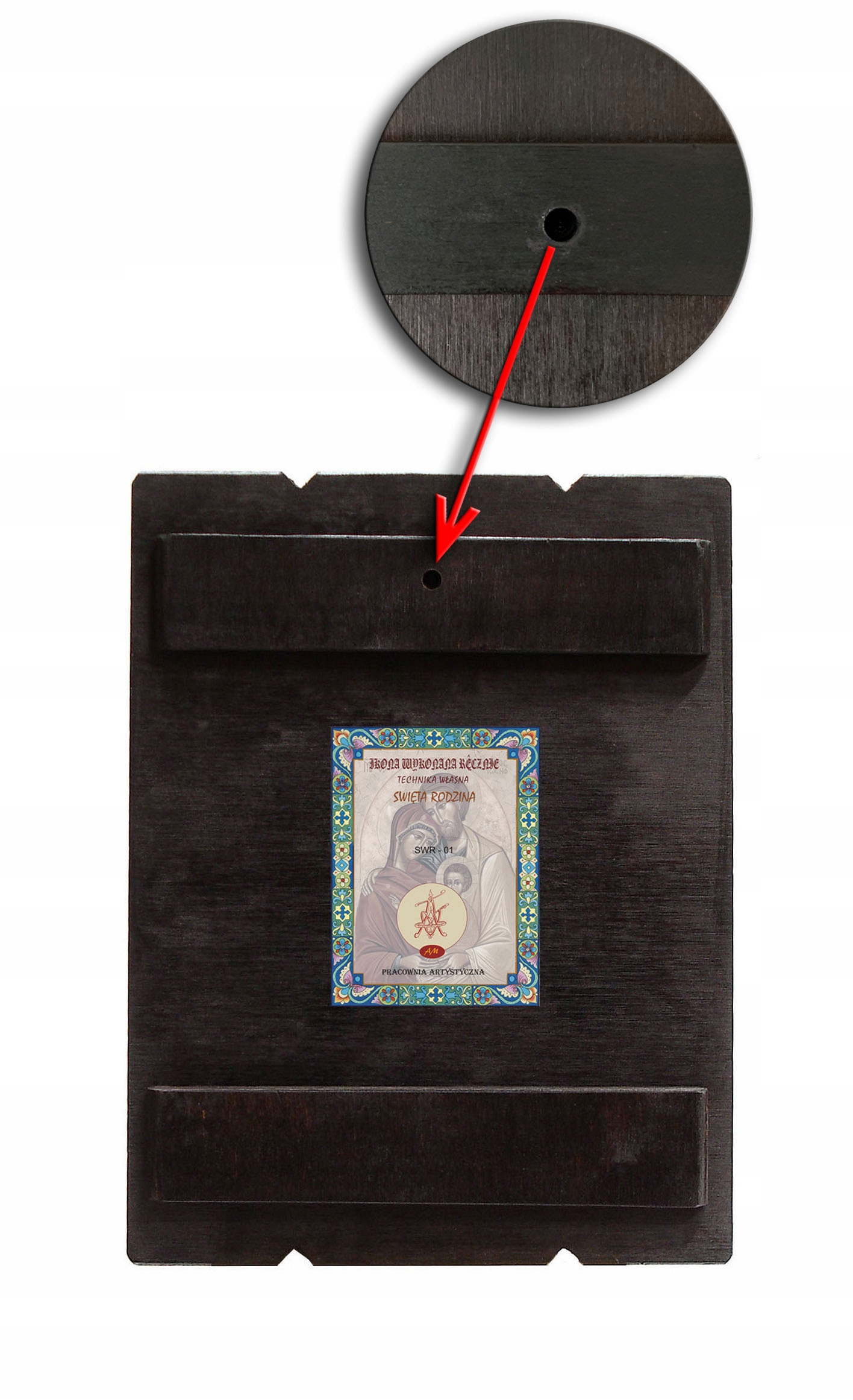 - просвердлений отвір ззаду для підвішування ікони li>